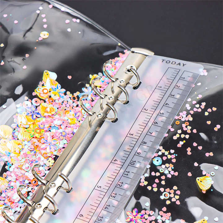 A6 Glitzer Ordner Mit Rosen-Gold-Ringen - Transparenter PVC-Deckel