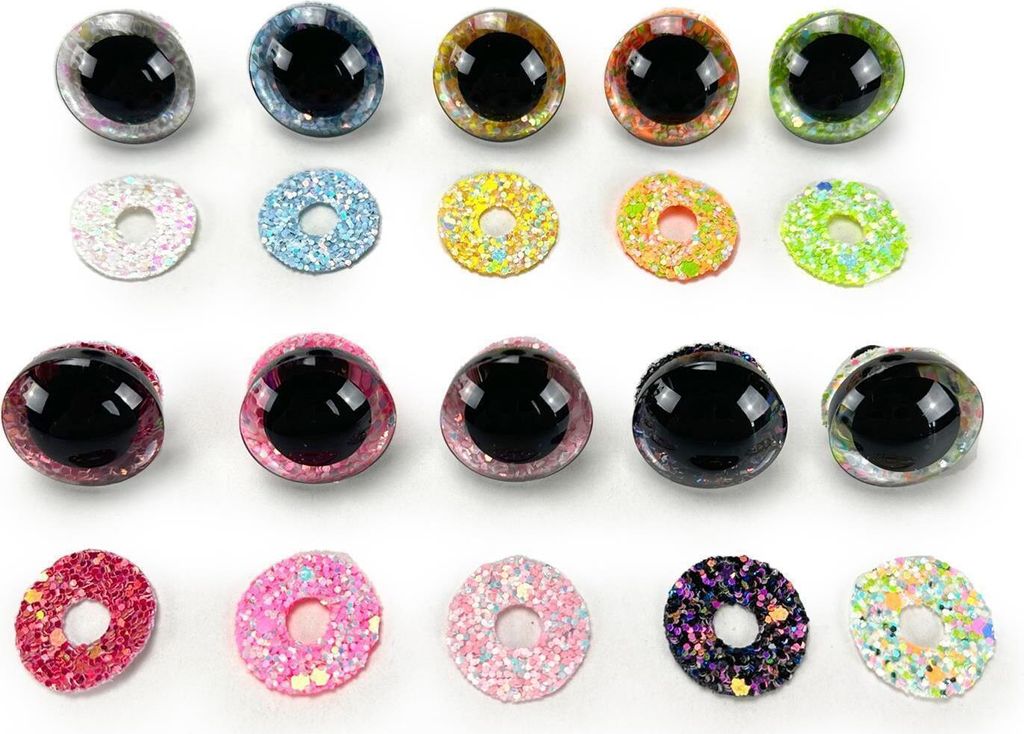 20 Stück Glitzernde Sicherheitsaugen Für Häkeltiere - 12-20mm Mit Bunten Unterlegscheiben