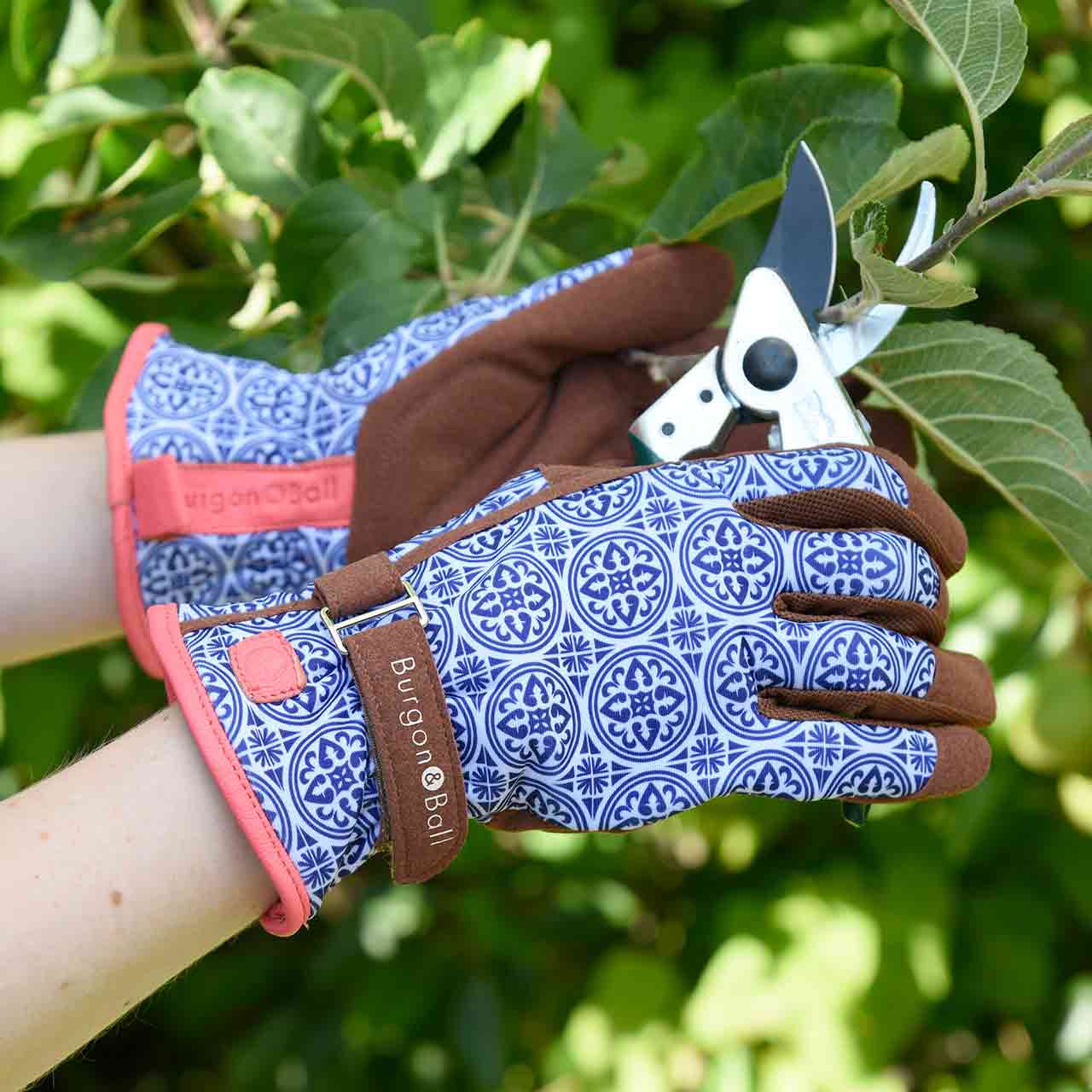 Green Gloves Gartenhandschuhe Azalea - Blumenmuster Blau, Größe 07