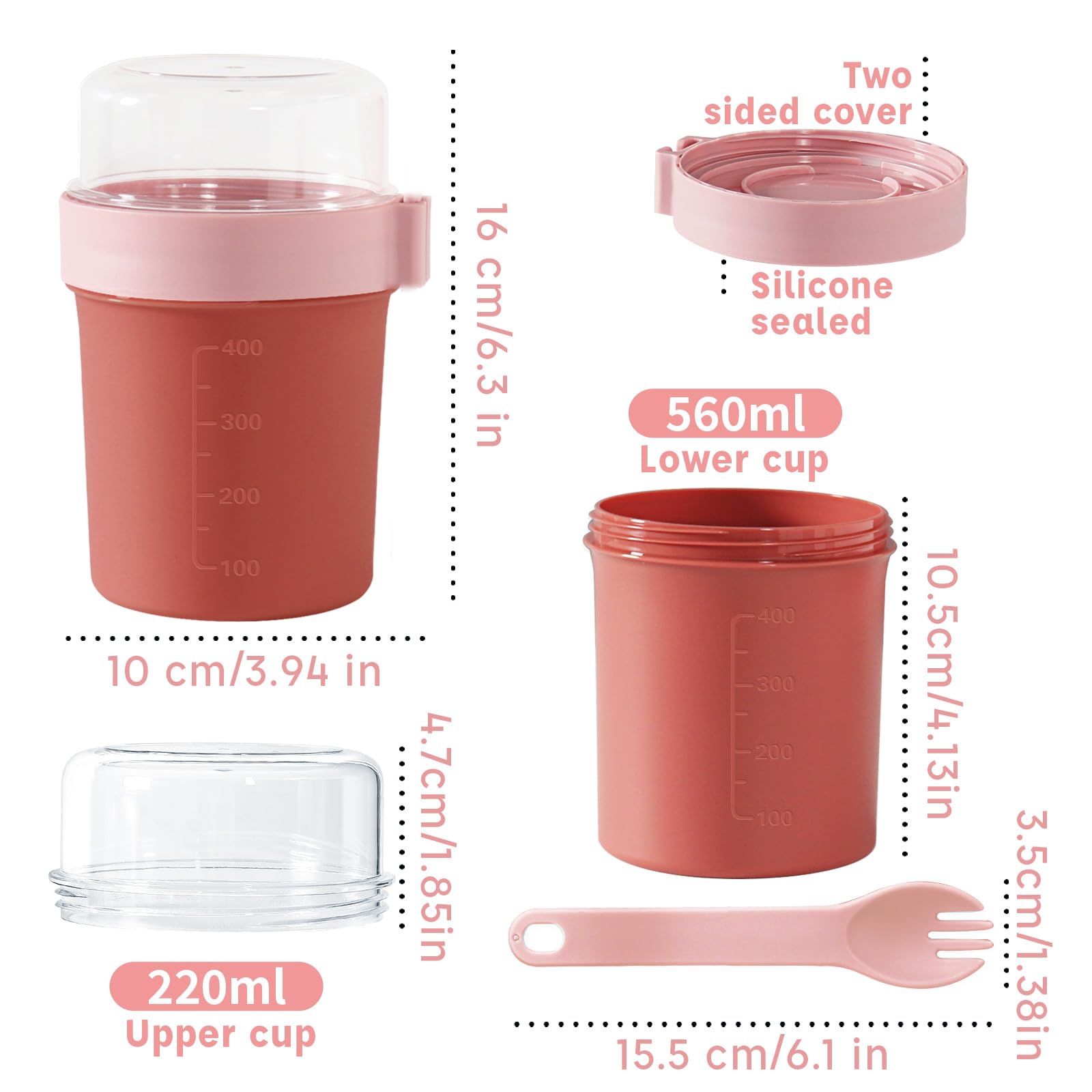 Müslibecher To Go 2in1 - 560ml+360ml Joghurtbecher Mit Löffel Für Unterwegs