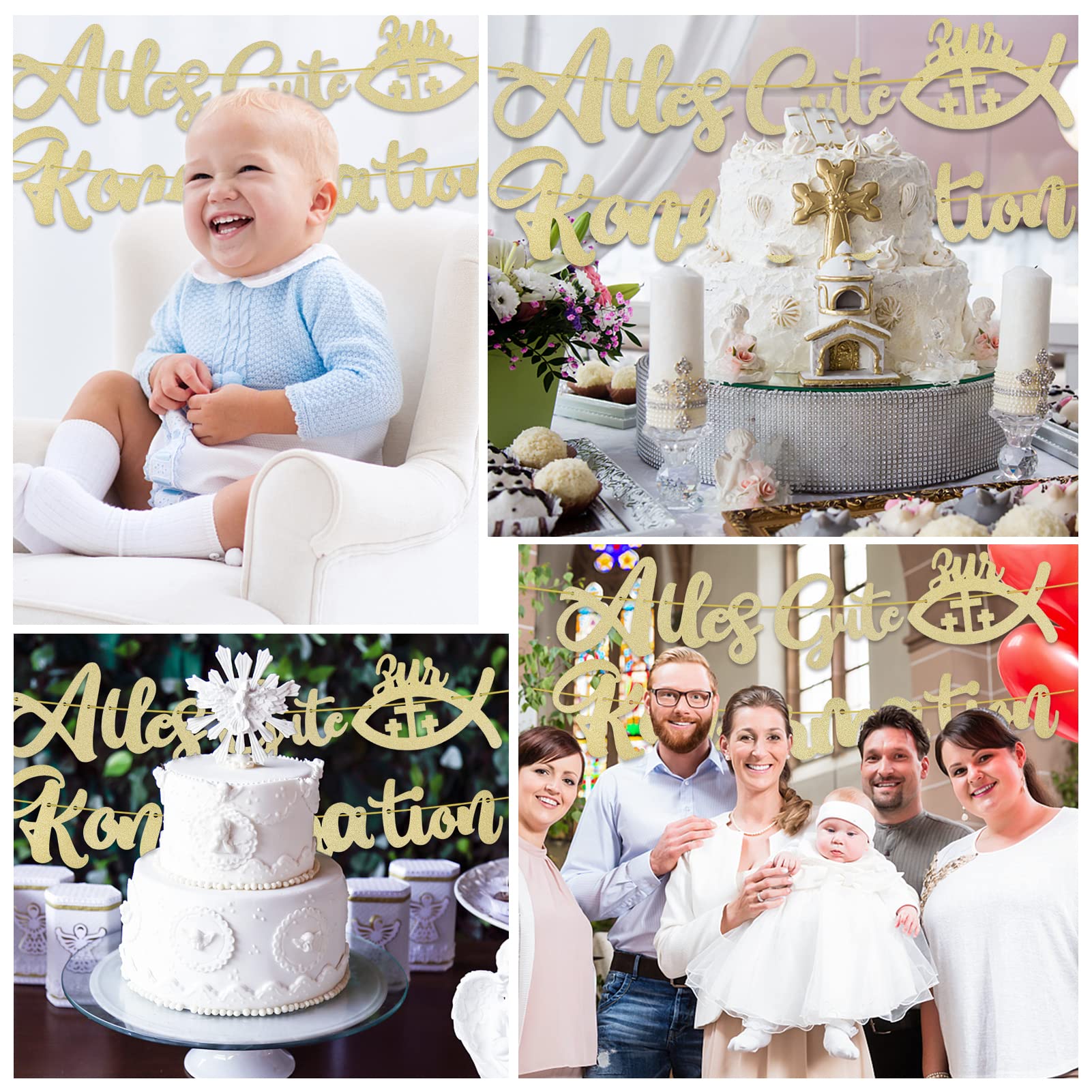 Kommunion Girlande Gold - Alles Gute Zur Konfirmation Banner Mit Torten-Deko - Für Jungen & Mädchen