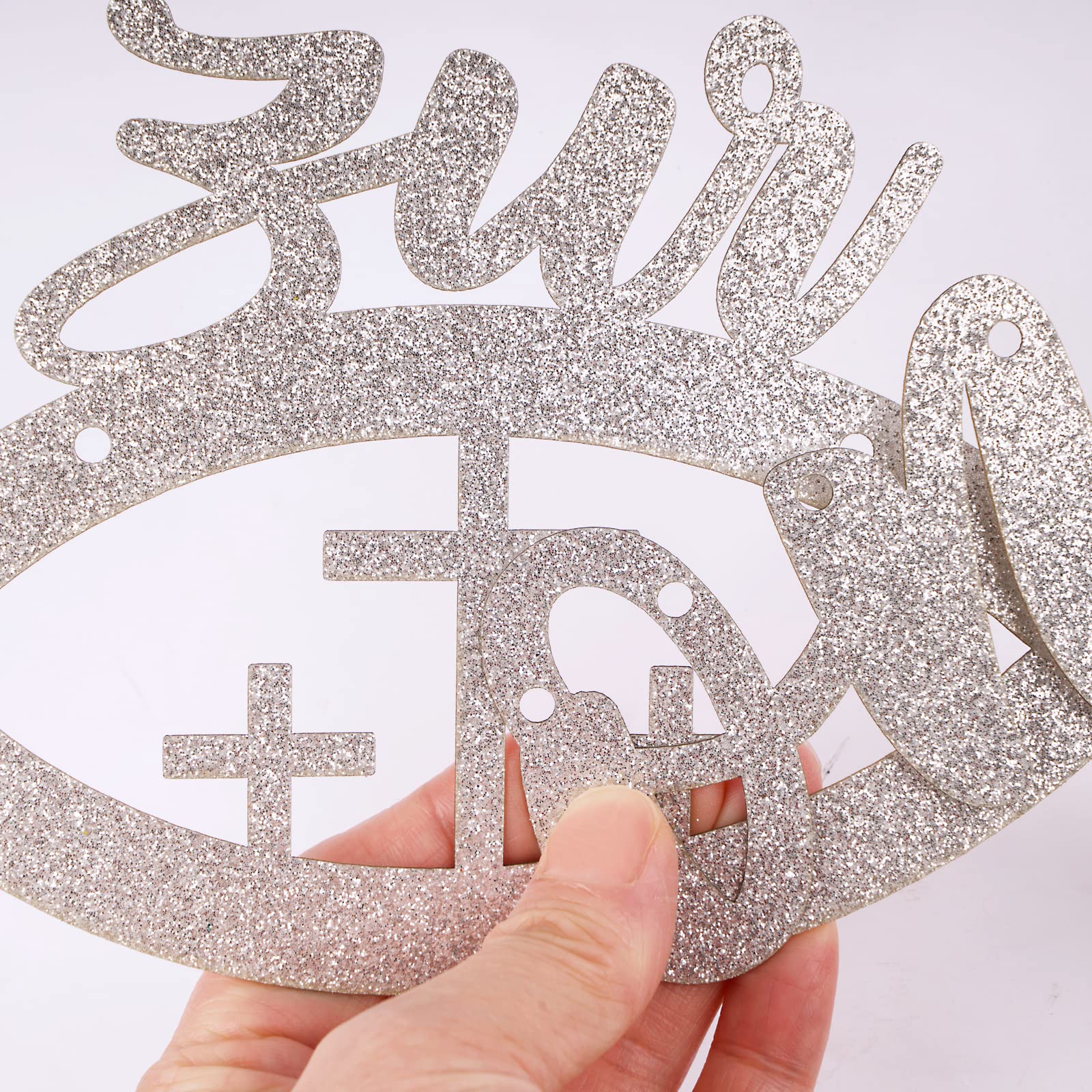 Die Girlande ist aus hochwertigem Gold-Glitzerkarton gefertigt und damit wiederverwendbar - super praktisch! Die niedlichen Fisch-Motive und die Friedenstaube sind klassische Symbole für Taufe und Kommunion. Die Montage der Torten-Deko ist kinderleicht: einfach den Holzstab ankleben und auf den Kuchen stecken.