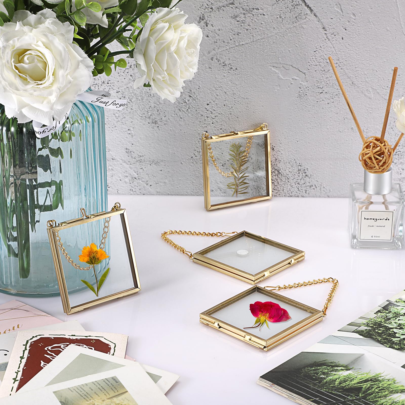 SUMTree 4er Set Mini Bilderrahmen Gold - Glas Rahmen Für Fotos & Blumen