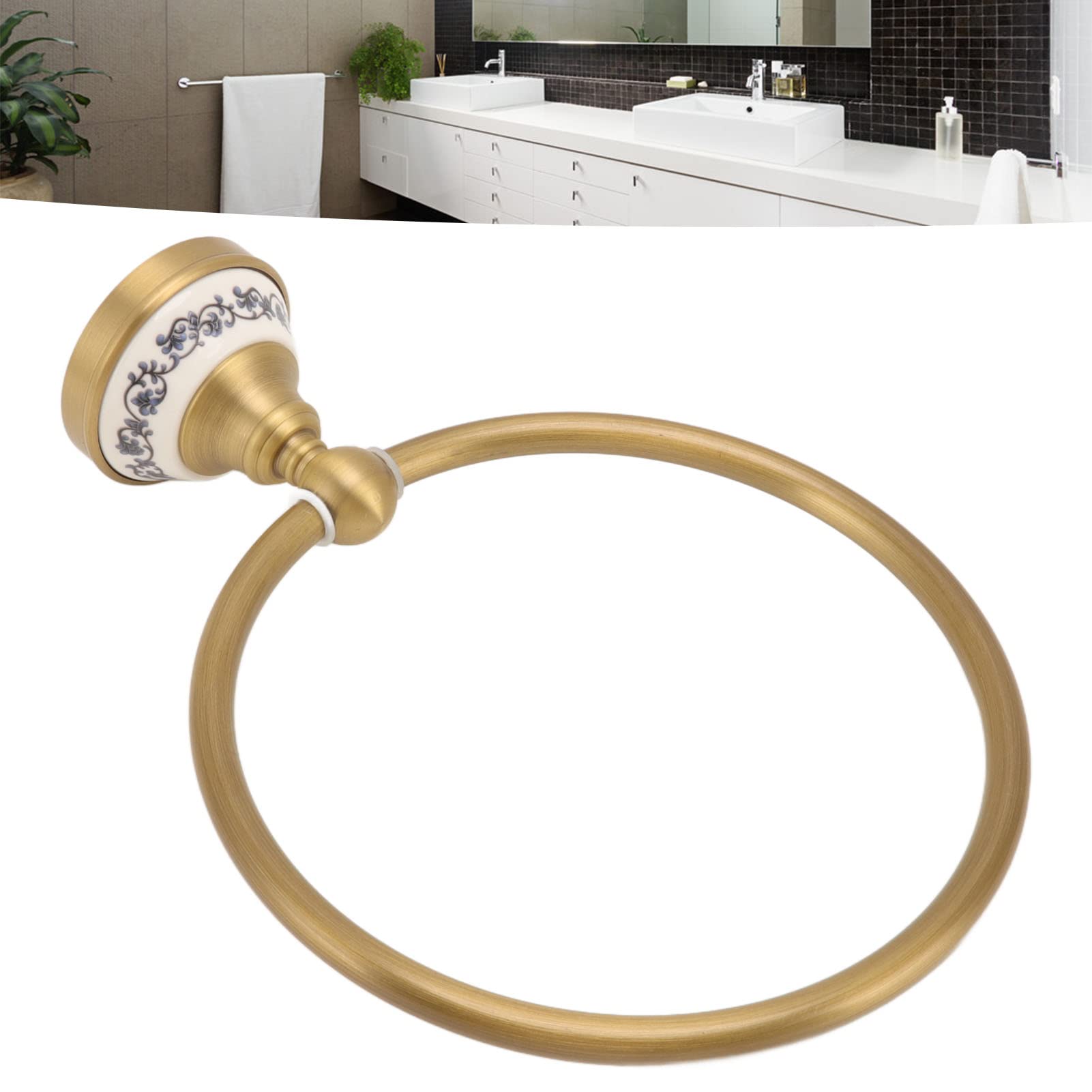 Antiker Gold Handtuchring Mit Porzellan-Dekor - Wandmontage Messing Finish