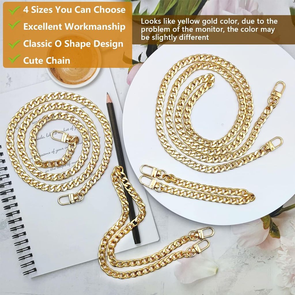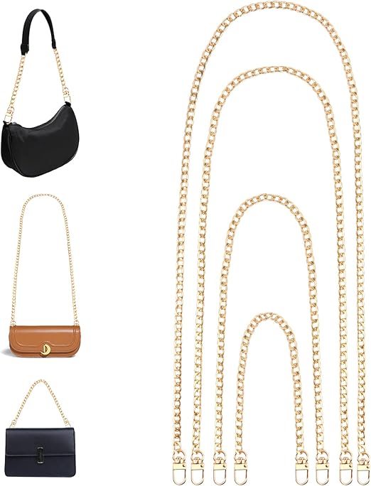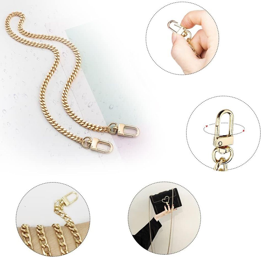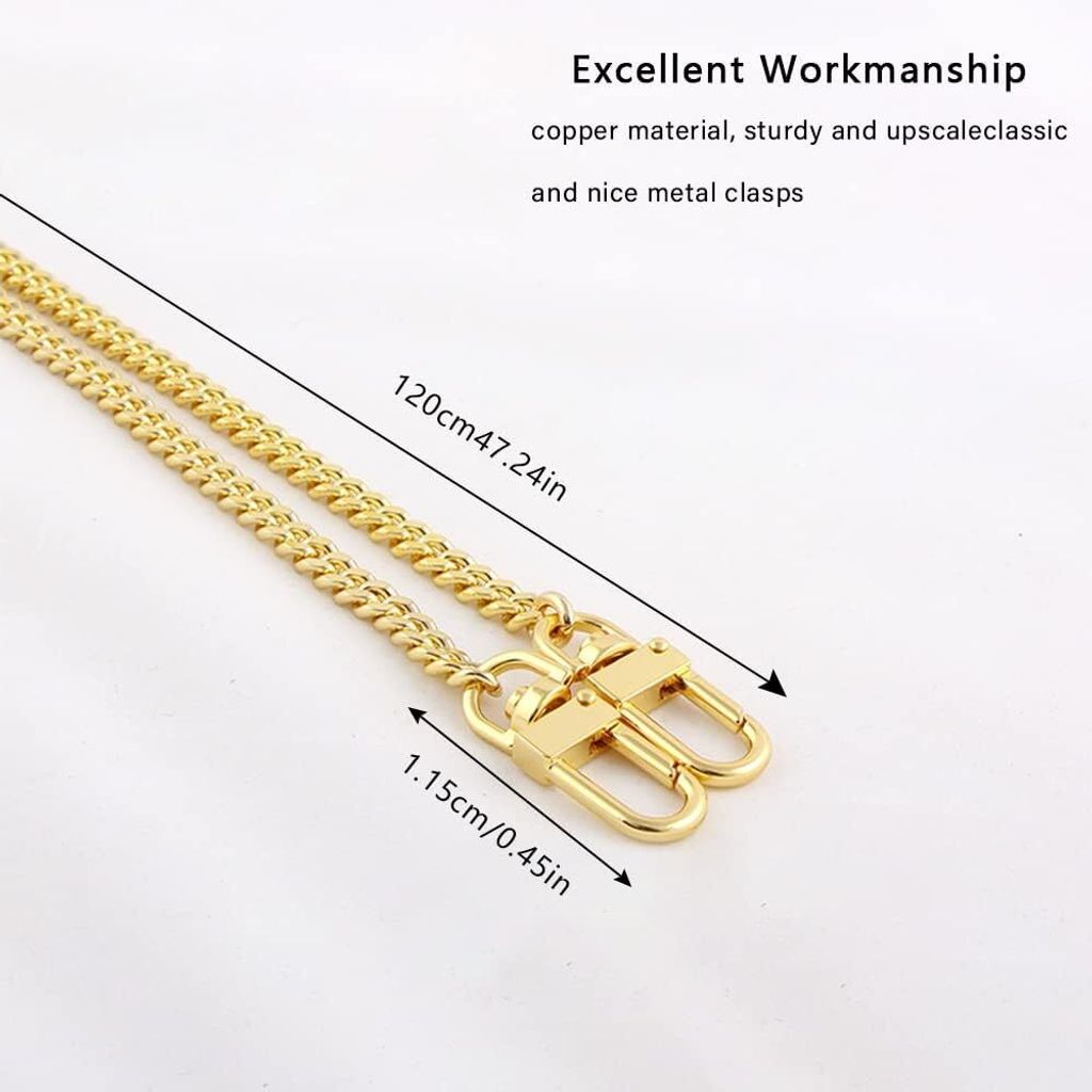 Mach deine Tasche zum Hingucker! Diese goldene Taschenkette ist nicht nur schick, sondern auch super praktisch. Mit 120 cm Länge und 8 mm Breite passt sie als Schultergurt oder Träger für fast jede Handtasche, Clutch oder Umhängetasche. Aus robustem Metall, das nicht rostet oder die Farbe verliert. Die Metallschnallen an beiden Enden sind abnehmbar und lassen sich um 360 Grad drehen - super einfach zu befestigen. Einfach die Haken in die Ösen deiner Tasche einhängen und schon sieht sie aus wie neu! Der retro-goldene Look passt zu fast allem und gibt deinem Outfit sofort einen stylischen Touch. Praktisch: Du kannst die Kette auch als Ersatz für kaputte Original-Träger verwenden. Ob für den Alltag oder besondere Anlässe - diese Kette macht jede Tasche zum Eyecatcher. Auch ein tolles Geschenk für deine beste Freundin oder dich selbst - weil man nie genug Taschen-Accessoires haben kann!