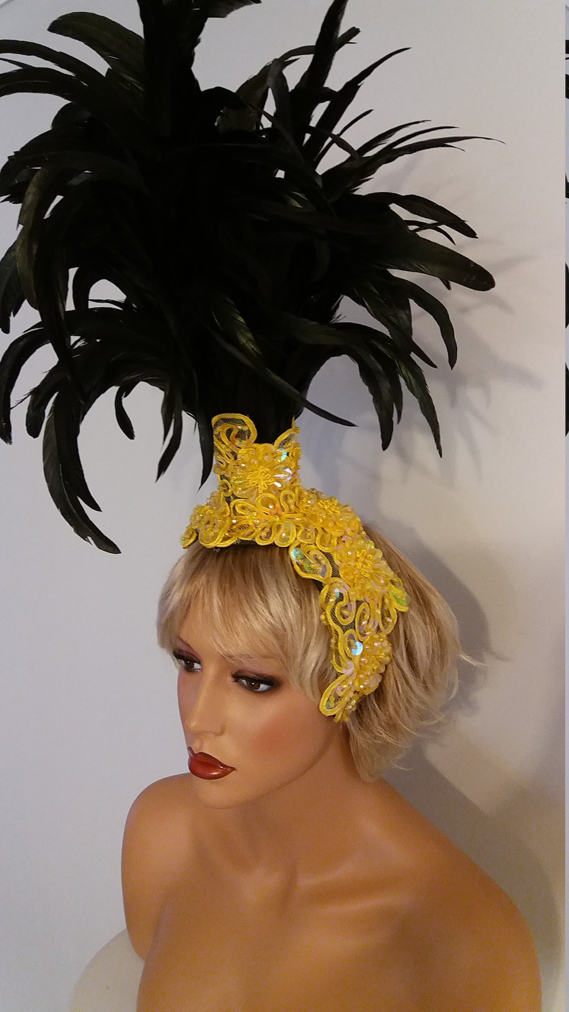 Beeindrucke alle auf der nächsten Party mit diesem atemberaubenden Feder-Kopfschmuck! Im brasilianischen Stil mit goldenen und schwarzen Federn - ein echter Hingucker. Perfekt für Karneval, Halloween, Hochzeiten oder Mottopartys. Der Kopfschmuck sitzt sicher und ist angenehm zu tragen. Einfach zu befestigen - keine komplizierte Montage nötig. In One Size, passt den meisten. Mach dein Outfit komplett und werde zum Mittelpunkt jeder Feier. Auch toll für Tänzerinnen oder Bühnenauftritte. Ein Accessoire, das garantiert auffällt!