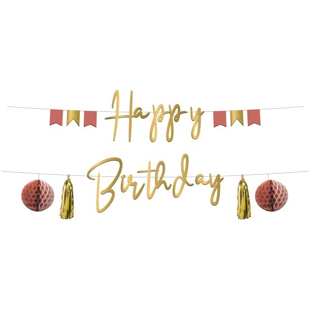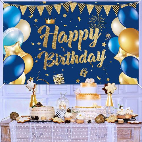 Happy Birthday Banner Blau Gold - Vorgefädeltes Geburtstagsdekoration Set