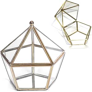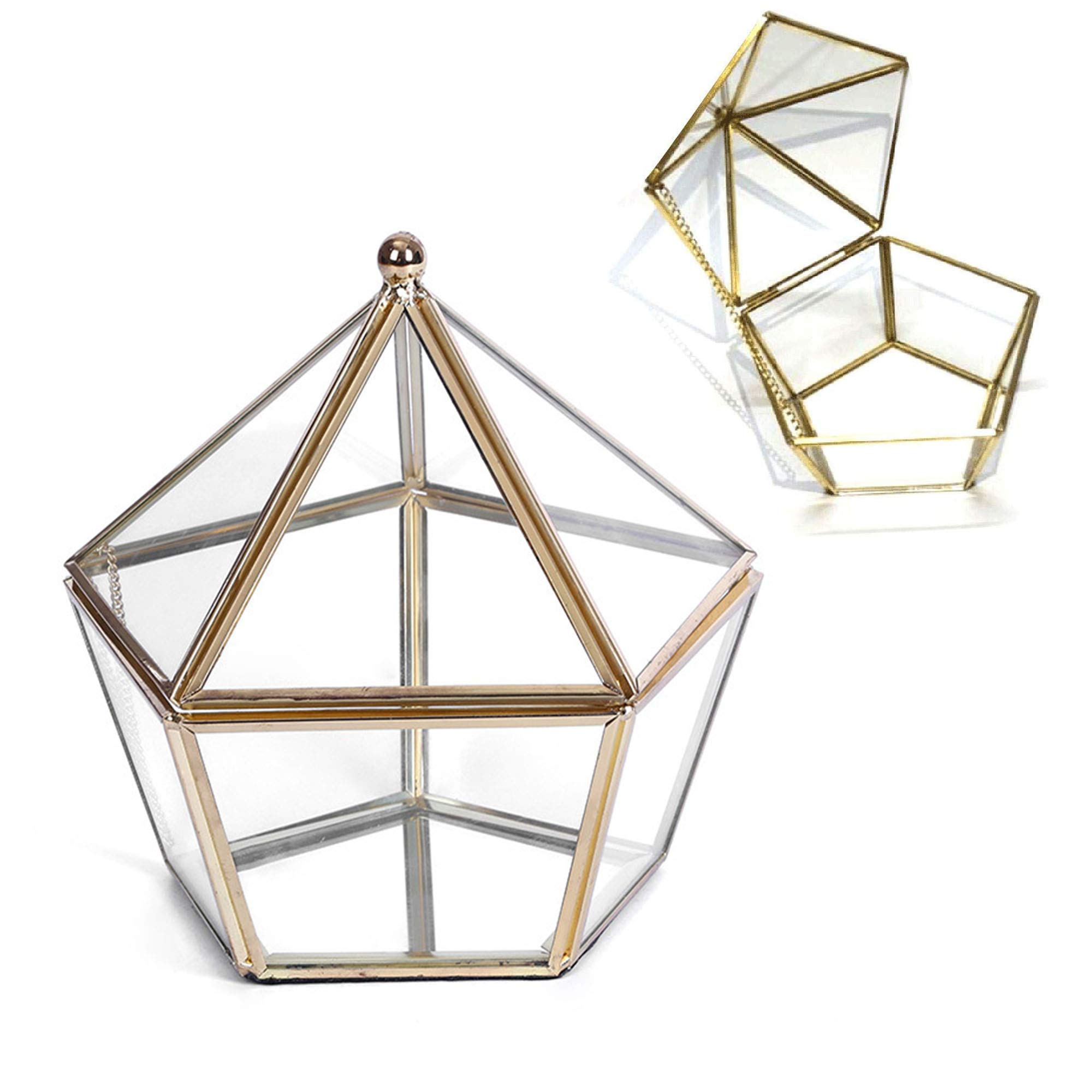 Geometrische Glas Terrarium Box - Goldene Schmuckdose Mit Klappdeckel Für Deko Und Aufbewahrung