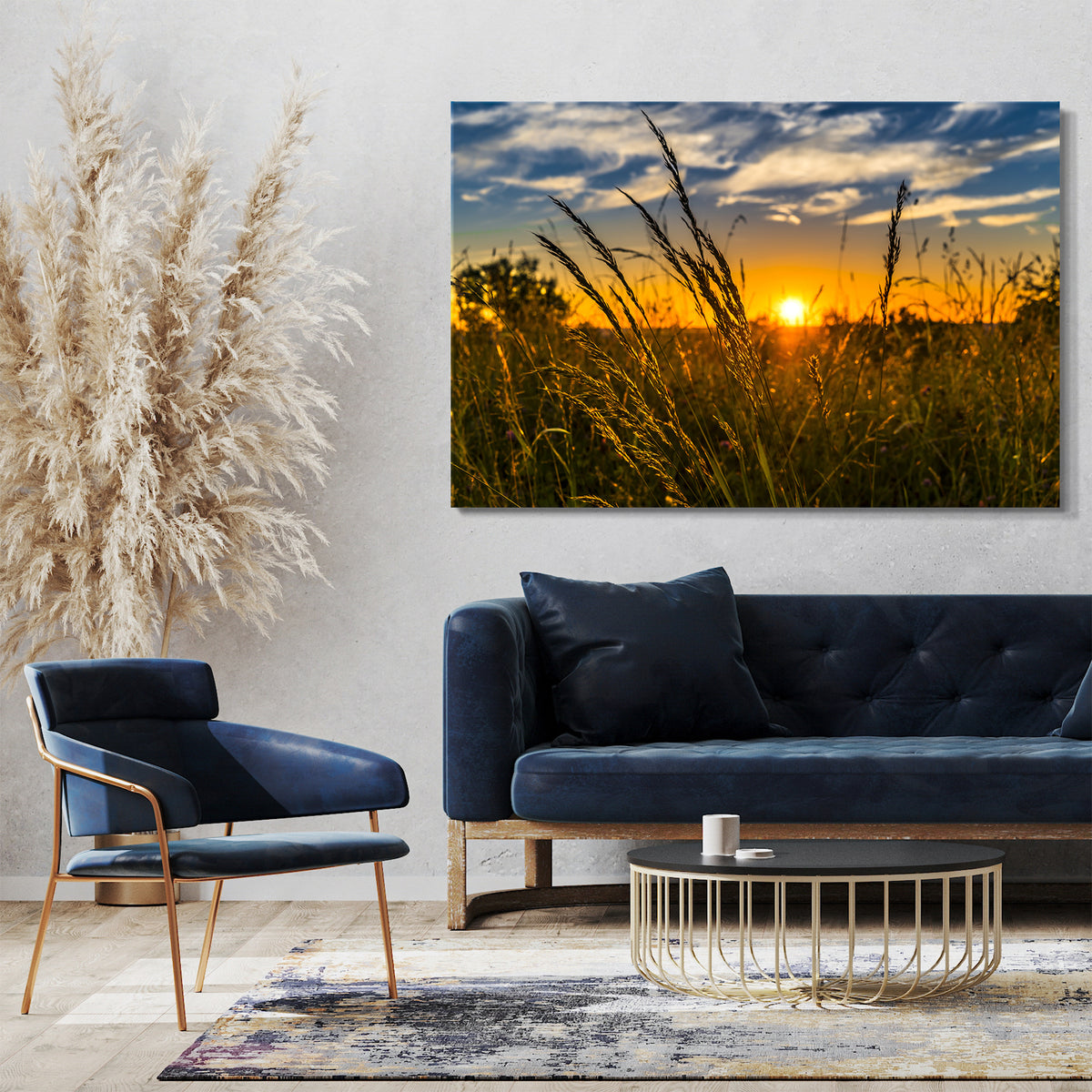 Islandburner Leinwandbild Goldenes Weizenfeld - Wandbild Sonnenuntergang In 130x80cm