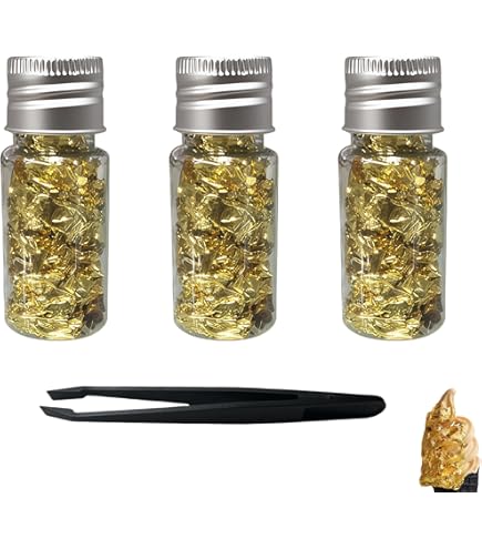 Goldfolie Flocken Set - 3 Praktische Fläschchen Mit Clip Für Essbare Verzierung Von Kuchen & Desserts