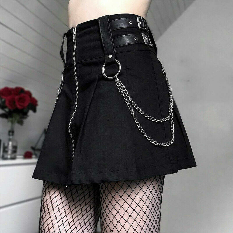 Gothic Steampunk Rock Damen - Faltenrock Mit Tasche Für Halloween & Karneval