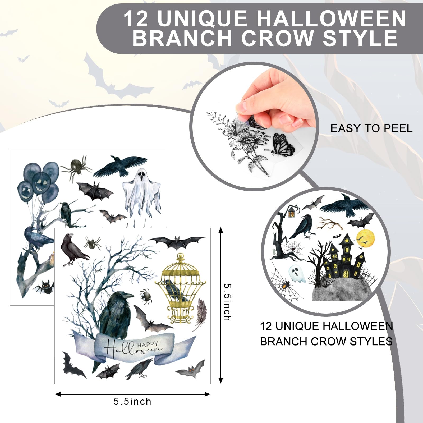 Gothic Transfer Aufkleber Set - 12 Blatt Dunkle Motive Für Fenster & Möbel