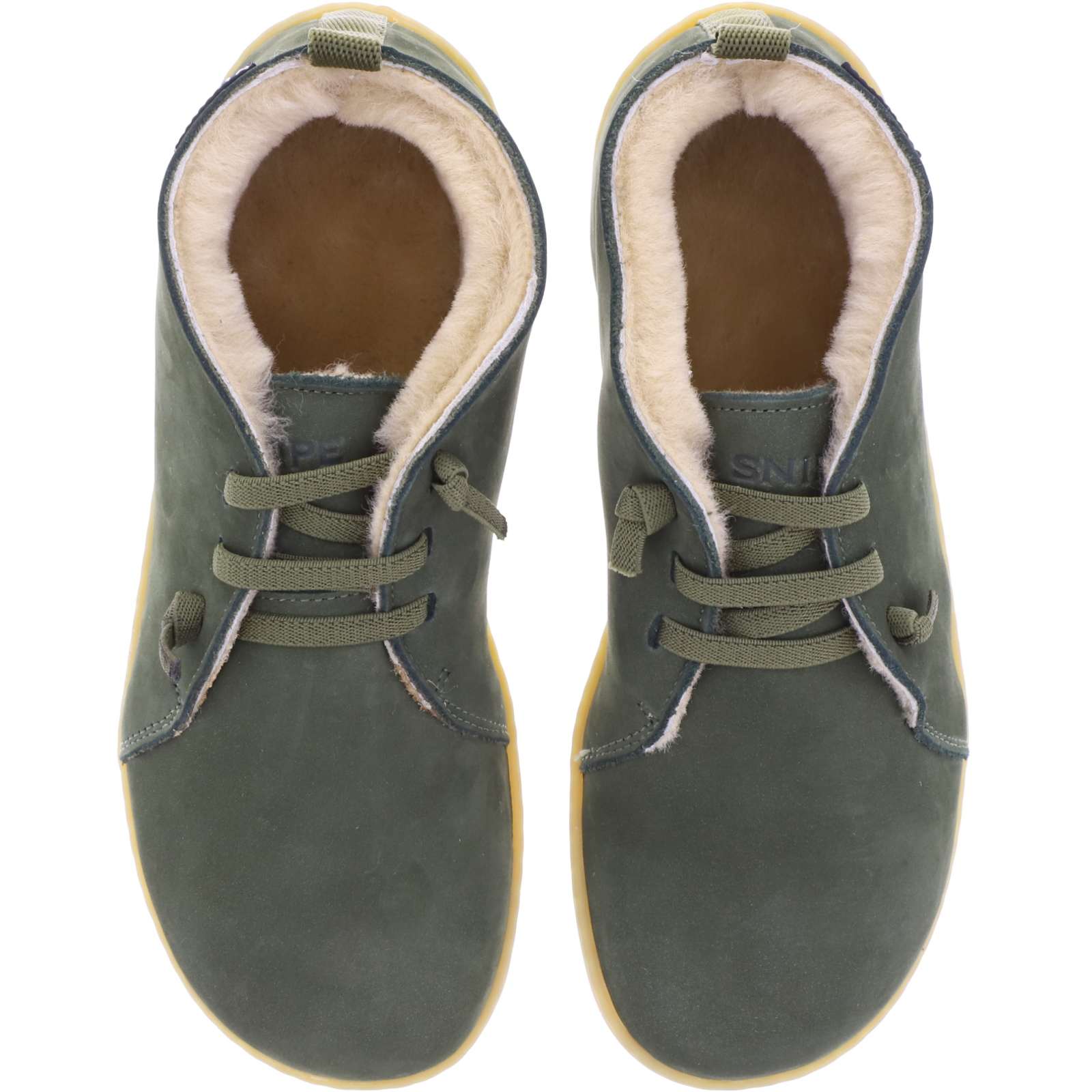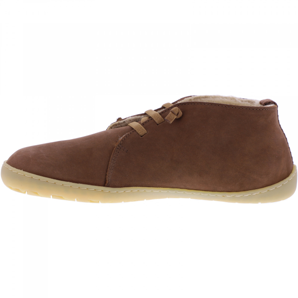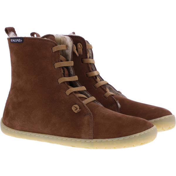 Suchst du nach bequemen Schuhen, die sich an deine Füße anpassen? Diese Snipe Barfuß-Stiefelette ist genau das Richtige für dich! Hergestellt in Portugal aus echtem Nubukleder in schönem Braun - das sieht nicht nur gut aus, sondern ist auch hochwertig verarbeitet. Das Innenfutter und die herausnehmbare Decksohle bestehen aus echtem Lammfell - super wärmend und temperaturausgleichend. Die sehr flexible und dünne Gummisohle ermöglicht ein natürliches Gehen und stärkt deine Fußmuskulatur. Mit einer Schafthöhe von 14,5 cm ist sie der perfekte Begleiter für Herbst und Winter. Der praktische Reißverschluss an der Innenseite macht das An- und Ausziehen super einfach. Die elastischen Senkel bieten hohen Tragekomfort und passen sich deinem Fuß optimal an. Ob für den Alltag, zum Spazierengehen oder für unterwegs - diese Barfuß-Stiefelette begleitet dich zuverlässig. Einfach anziehen und wohlfühlen - deine Füße werden dir danken! Perfekt für alle, die Wert auf natürliches Gehen und hohen Komfort legen.