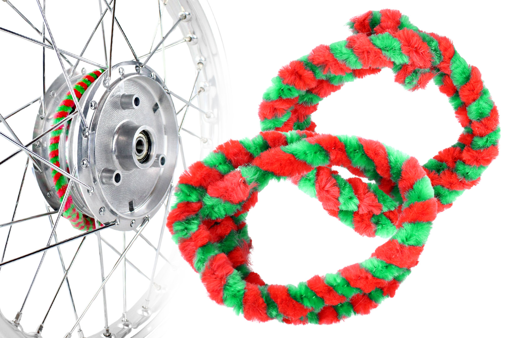 Coole Nabenputzringe im blau-grünen Ringel-Design - ein echter Ost-Kult! Mit 56 cm Länge passen sie zu Radnaben bis 168 mm Durchmesser. Die speziellen Kunstfasern sind schmutz- und wasserabweisend - reinigen super effektiv und behalten immer ihre borstige Form. Perfekt für Mopeds, Mokicks, E-Bikes und Fahrräder mit Speichenrädern. Besonders beliebt für Simson Modelle S50, S51, S53, S70, S83, KR51, SR4. Einfache Montage - einfach um die Nabe wickeln. Sieht nicht nur stylisch aus, sondern schützt deine Naben auch zuverlässig vor Schmutz. Im Set: 2 Putzringe (ein Paar) für beide Räder. Mach dein Bike sauberer und individueller!