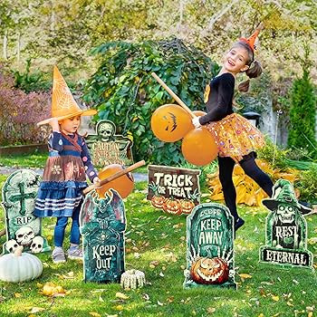 Larber Halloween Grabsteine Deko Set - 6 Stück Mit LED Lichterkette | Grusel Deko Für Garten