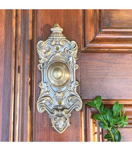 Bringen Sie ein Stück Geschichte an Ihre Haustür! Diese wunderschöne Messing-Türklingel im Gründerzeit-Design verleiht jedem Eingang sofort mehr Charakter. Aus hochwertigem, poliertem Messing gefertigt, strahlt sie edle Eleganz aus. Mit den Maßen 16 x 11,5 cm und einer Einbautiefe von 1,5 cm ist sie perfekt für die meisten Haustüren geeignet. Das schwere Messing garantiert Langlebigkeit und einen satten, klaren Klingelton. Ob für Altbau, Villa oder Landhaus - diese Türklingel ist ein echter Hingucker und verleiht Ihrer Eingangstür das gewisse Etwas. Einfach montieren und sich über das klassische Design freuen!