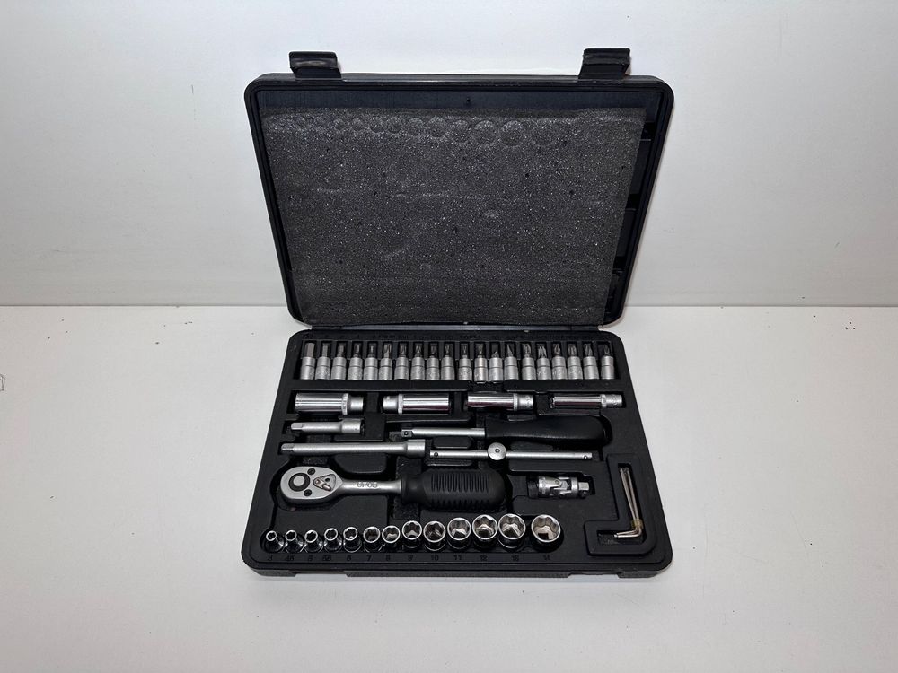 Das ultimative All-in-One Werkzeug für jede Aufgabe! Der Granite Duet Ratschensatz vereint alles, was du für Reparaturen am Auto, im Haushalt oder bei Hobby-Projekten benötigst. Das Herzstück ist die innovative Doppelkopf-Ratsche, die sowohl mit Sechskant-Bits als auch mit Stecknüssen arbeitet - einfach umschalten und weitermachen! Der umkehrbare Mechanismus ermöglicht blitzschnelles Wechseln zwischen Rechts- und Linkslauf, ohne das Werkzeug abzusetzen. Im Set enthalten: 7 Stecknüsse (6,7,8,9,10,11,13mm), 7 Sechskant-Bits (2,2.5,3,4,5,6,8mm), 3 Stern-Bits (T15,T20,T25) und 1 Phillips-Bit (PH2), plus Verlängerungsstange. Gefertigt aus robustem S2-Legierungsstahl für maximierte Haltbarkeit und Langlebigkeit. Die kompakte Aufbewahrungsbox sorgt für Ordnung und macht das Set perfekt transportabel. Egal ob Möbelmontage, Fahrradreparatur oder professionelle Einsätze - mit diesem vielseitigen Werkzeugsatz bist du für jede Herausforderung gewappnet. Praktisch, clever durchdacht und unverzichtbar für jede Werkstatt!