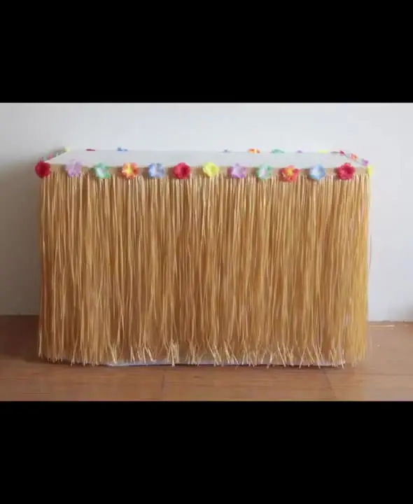 Hawaiianischer Luau-Tischrock 274x74cm - Silberner Grasschürze Für Rechteckige Tische
