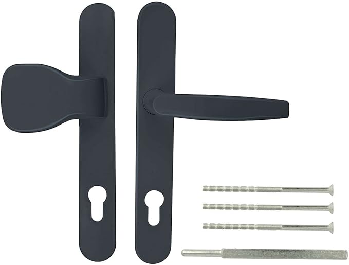 Modernes Design trifft auf höchste Qualität! Diese Breva Drückergarnitur in elegantem Grau (RAL 7016) verleiht deiner Tür einen zeitgemäßen Look. Mit einer Schildbreite von 35mm und der praktischen Griff-Knauf-Kombination ist sie sowohl funktional als auch stylisch. Die Lochung von 92mm (Mitte Griff bis Mitte Schließzylinder) passt zu den meisten Standardtüren. Hergestellt aus hochwertigem Aluminium und Zink-Druckguss ist die Garnitur besonders langlebig und robust. Die pulverbeschichtete Oberfläche ist kratzfest und wetterbeständig - perfekt für Haustüren, Gartentüren oder Nebeneingänge. Im Lieferumfang ist alles für die Montage enthalten. Die stabile Hochhalte-Feder richtet den Griff automatisch auf und sorgt für angenehmes Handling. Verleihe deiner Tür mit dieser Premium-Garnitur einen echten Upgrade!