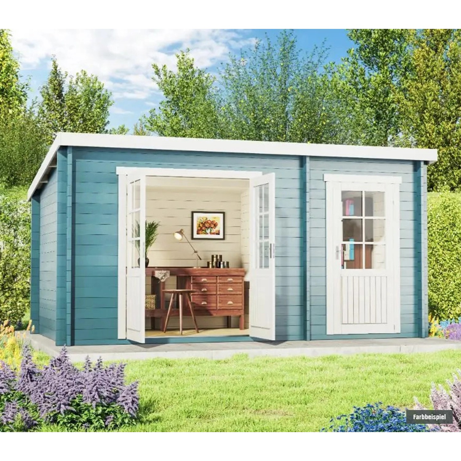 Träumst du von einem eigenen Gartenhaus? Das Alpholz Valeria-28 in Grau macht's möglich! Mit stolzen 428x427cm Außenmaß und 13.87m² Grundfläche bietet es reichlich Platz für deine Hobbys, als Gerätehaus oder gemütliche Freizeitoase. Das Tolle: Das Komplett-Set enthält bereits alles, was du brauchst - inklusive Fußboden aus 12mm Multifunktionsplatten und komplette Dacheindeckung. Die 28mm starken Blockbohlen mit 4-fach Eckausfräsung machen das Haus wind- und regendicht. Durch die graue Imprägnierung ist kein Erstanstrich nötig - du kannst sofort mit dem Aufbau loslegen! Die Doppeltür aus Leimholz (ca. 160x173cm) und das Einzelfenster (77x77cm) mit Echtglas sorgen für eine helle, freundliche Atmosphäre. Seitenwandhöhe ca. 182cm, Gesamthöhe ca. 222cm - da passt selbst ein Großer bequem rein. Mit Montagematerial, Schloss und Aufbauzeichnung - alles dabei für dein neues Gartenreich! Perfekt für Werkzeug, Gartengeräte oder als Rückzugsort im Grünen.