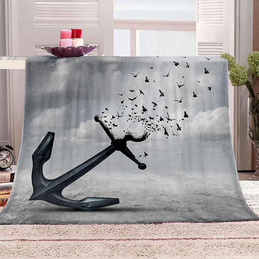 Graue Kuscheldecke 100x130cm - Weiche Flauschdecke Mit Anker Druck Für Sofa & Bett