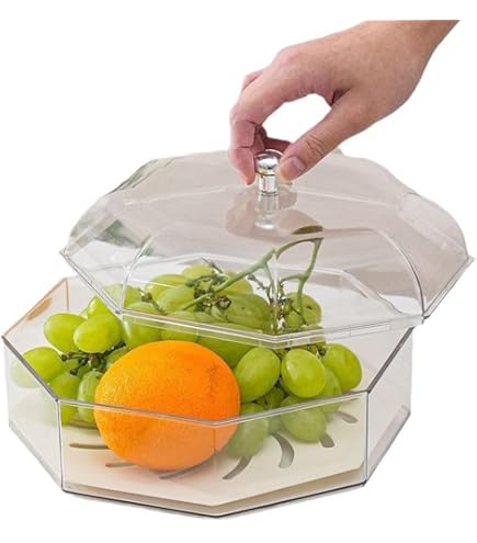 Dieser stylische graue Obstkorb von MagiDeal hält dein Obst frisch und ordentlich! Mit einem cleveren hohlen Drainage-Design bleibt dein Obst trocken und länger frisch. Der transparente Deckel lässt dich sofort sehen, was drin ist, ohne ihn öffnen zu müssen. Aus umweltfreundlichem PET-Material gefertigt, ist die Schale robust und langlebig. Die glatte Innenwand ohne Grate macht die Reinigung super einfach. Mit praktischem Griff kannst du den Korb leicht transportieren. Maße: 25,8 cm Öffnungsdurchmesser, 21 cm hoch. Perfekt für die Küchentheke - schön anzusehen und praktisch im Gebrauch!