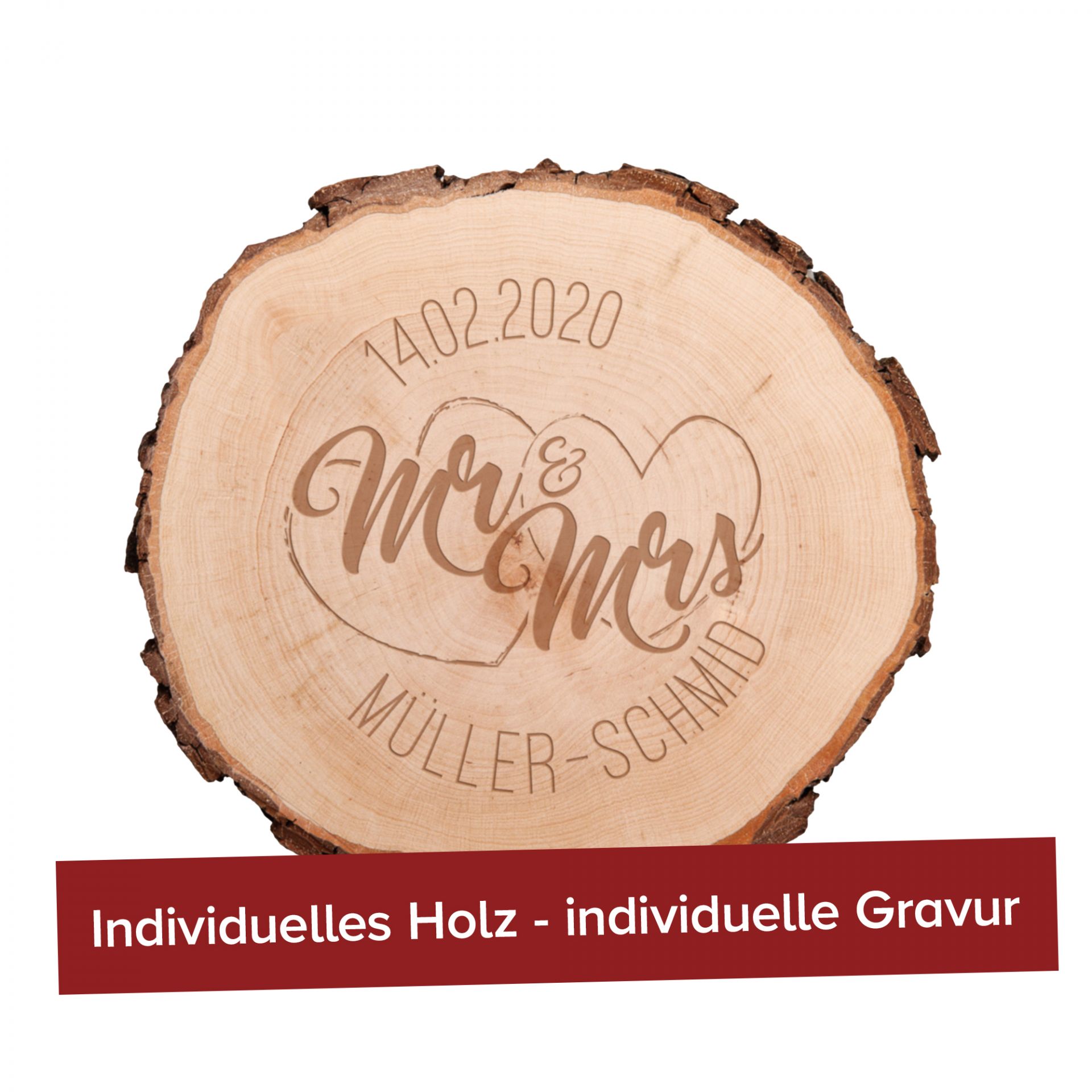 Personalisiertes Holzgeschenk - Gravur Auf Baumscheibe Für Hochzeit, Jahrestag Oder Geburtstag