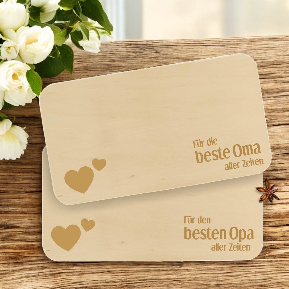 Suchst du noch das perfekte Geschenk für den besten Opa? Dieses Frühstücksbrett mit persönlicher Gravur wird ihm sicher ein Lächeln ins Gesicht zaubern! Hergestellt aus robustem Buchenholz, das nicht nur umweltfreundlich ist, sondern auch ewig hält. Jedes Brett ist ein Unikat mit seiner eigenen Holzmaserung - da gibt's kein zweites Mal! Die Lasergravur ist super präzise und verblasst nicht, egal wie oft du es benutzt. Perfekt für die tägliche Brotzeit oder wenn mal Gäste kommen. Und keine Sorge um die Pflege: Einfach abwischen (aber bitte nicht in die Spülmaschine!) und ab und zu mit etwas Speiseöl einreiben - so bleibt das Holz schön geschmeidig. Ob zum Vatertag, Geburtstag oder einfach so - dieses Brett zeigt, wie sehr du an deinen Opa denkst!