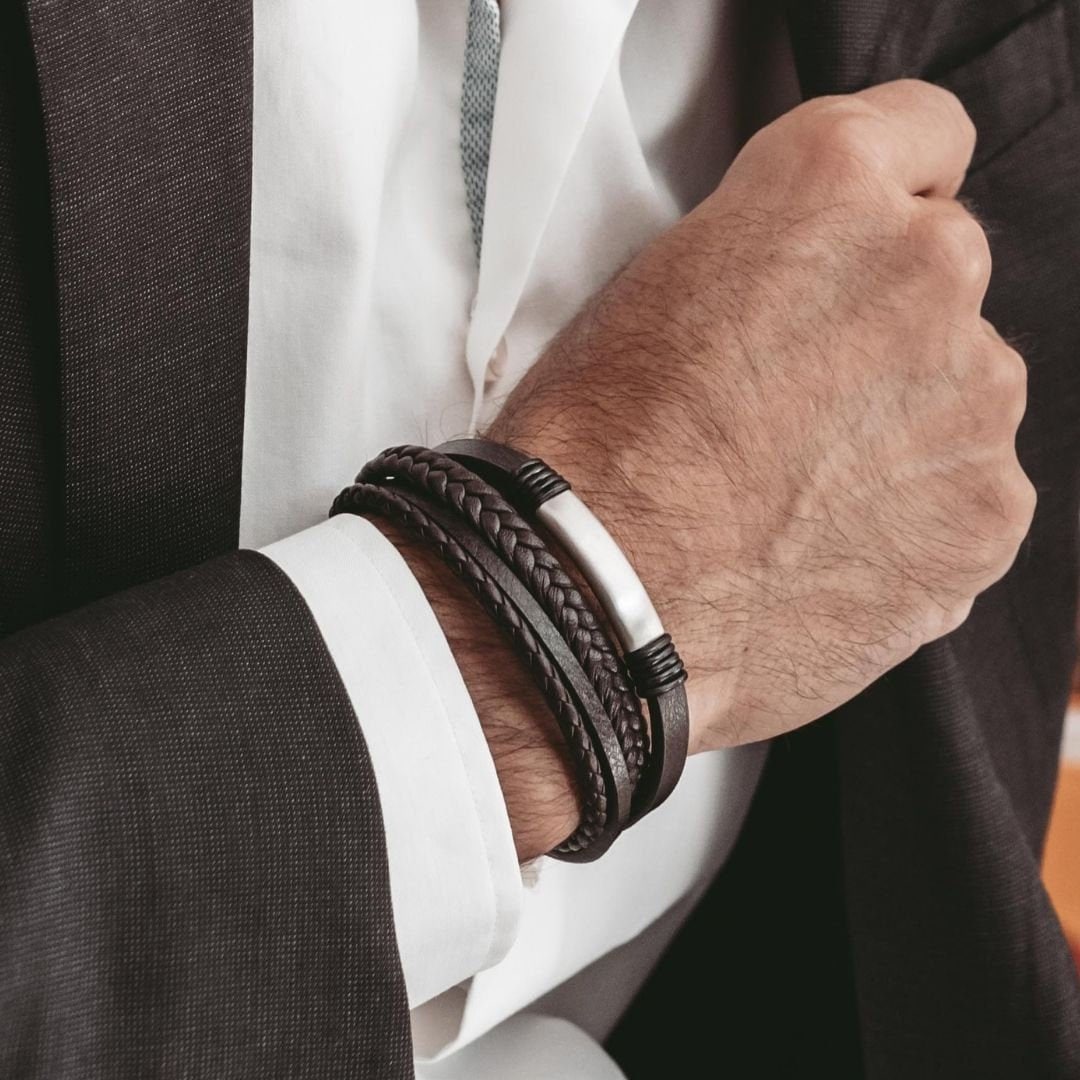 Suchst du ein besonderes Geschenk für deinen Mann, Partner oder Vater? Dieses personalisierte Lederarmband von AKANX ist perfekt! Aus hochwertigem Echtleder gefertigt, liegt es super weich und angenehm am Handgelenk. Das Besondere: Die Edelstahl-Gravurplatte kann mit einem Namen, Datum oder einer persönlichen Botschaft graviert werden! So wird jedes Armband ein Unikat. Perfekt als Geschenk zum Jahrestag, Geburtstag, Vatertag oder einfach so als Zeichen der Zuneigung. Das zeitlose Design passt zu jedem Outfit - ob lässig im Alltag oder elegant am Abend. Die robuste Verarbeitung garantiert, dass du lange Freude an diesem besonderen Accessoire hast. Ein Geschenk, das nicht nur gut aussieht, sondern auch eine tiefere Bedeutung hat. Überrasche deinen Liebsten mit einem Stück, das wirklich von Herzen kommt! 💝👔
