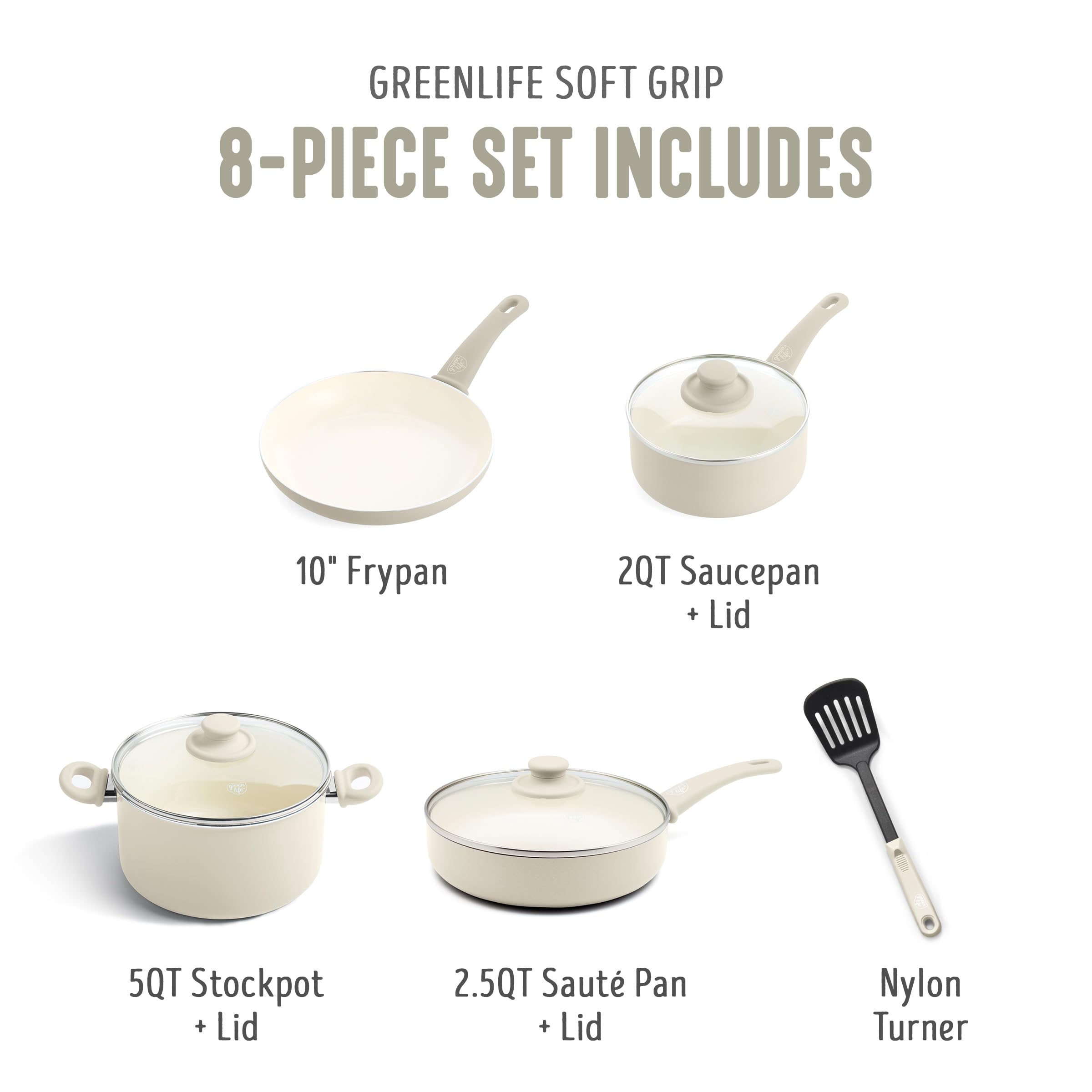 GreenLife Soft Grip Kochset 8-teilig - Keramik Antihaft, PFAS-frei, Spülmaschinenfest