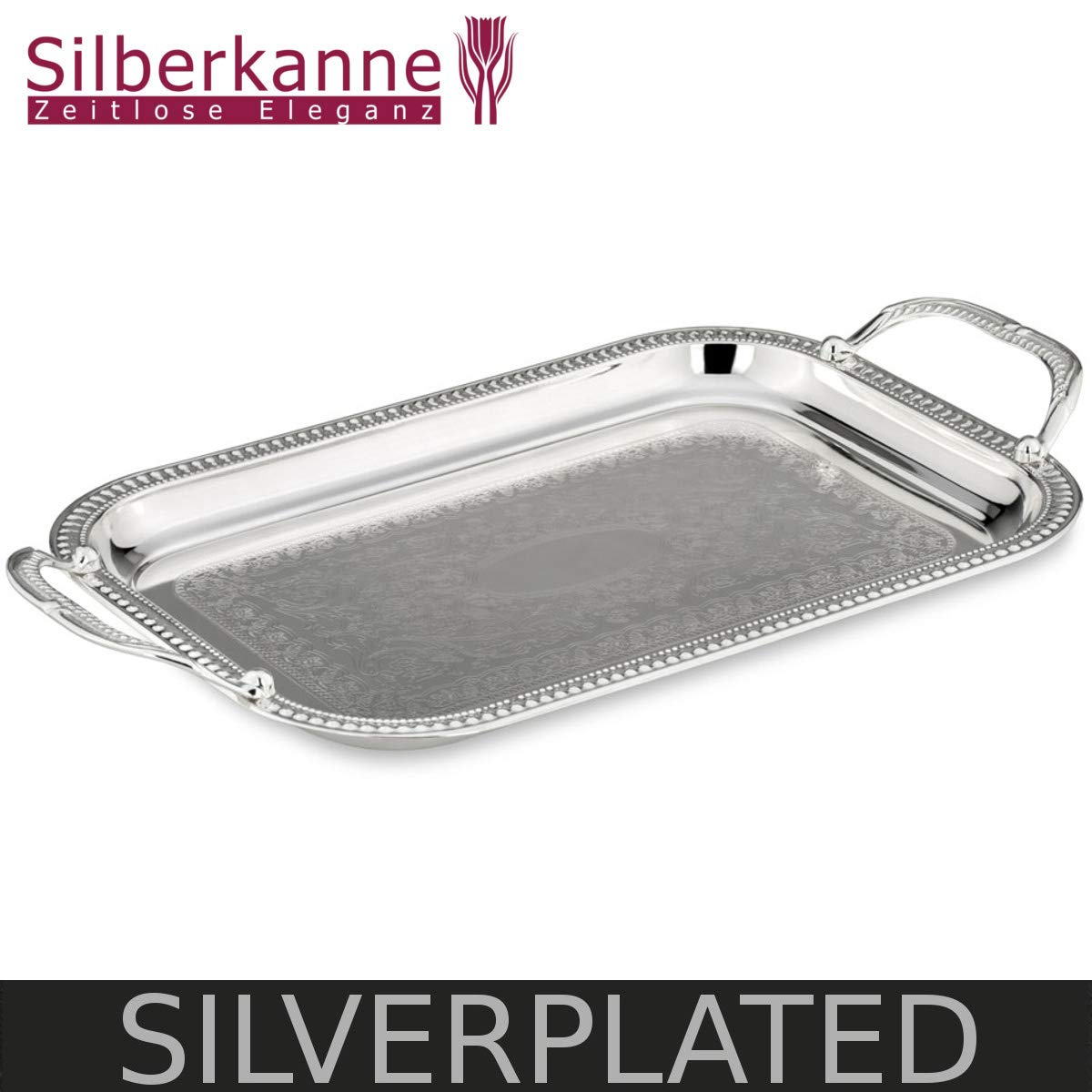 Silberne Servierplatte Mit Griffen | 39x25cm Vintage Tablett