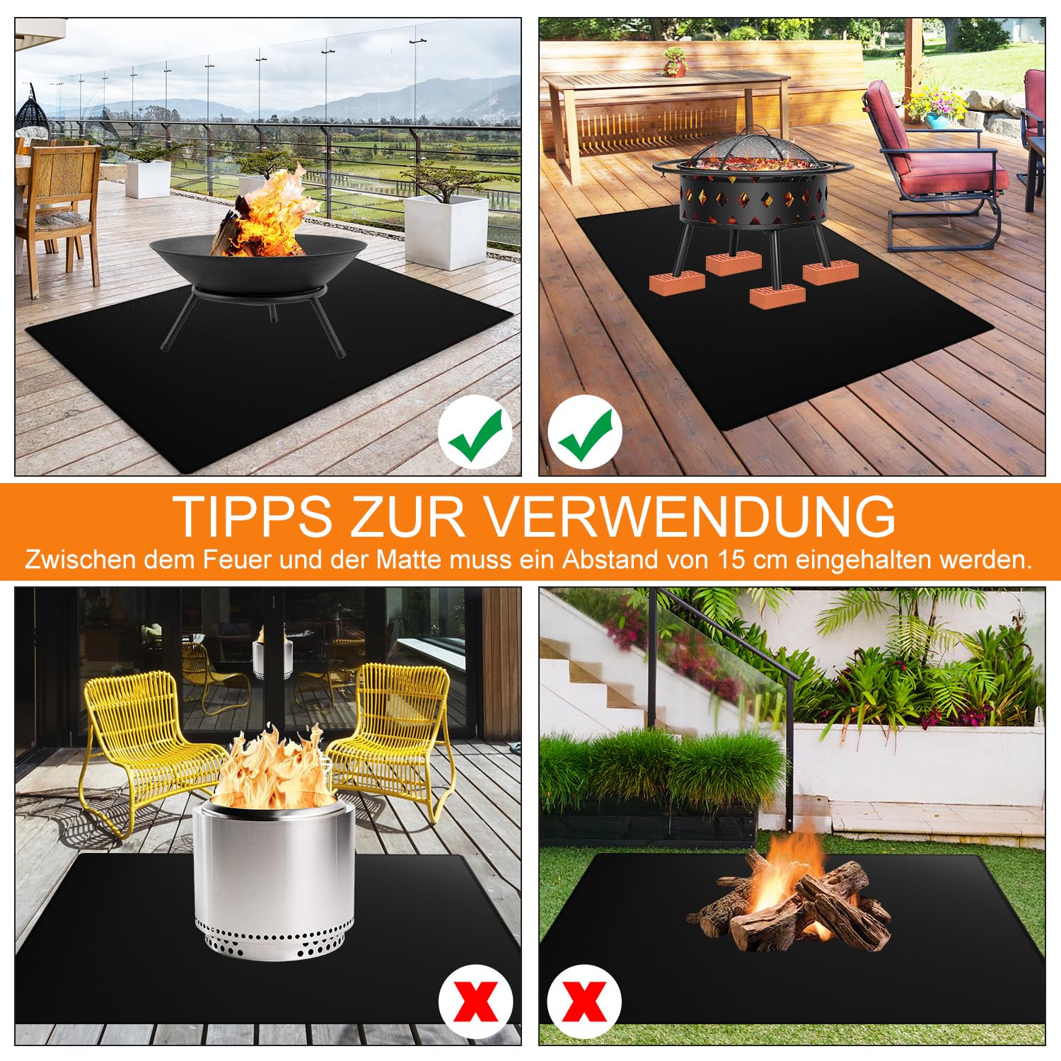 Puh, Grillen ohne diese Matte? Echt anstrengend! Diese feuerfeste Glasfasermatte ist der absolute Game-Changer für jeden Grill-Fan. Sie schützt deinen Boden vor Funken, Fettflecken und der extremen Hitze vom Grill. \\n\\nMit 50x60cm ist sie groß genug für die meisten Grills - egal ob Holzkohle oder Gas. Einfach unter den Grill legen und schon bist du vor unschönen Brandflecken auf der Terrasse oder im Garten sicher. \\n\\nDas Material ist aus hochwertiger Glasfaser und hält selbst hohen Temperaturen problemlos stand. Die Matte ist super langlebig und kann immer wieder verwendet werden. \\n\\nPerfekt für Gartenpartys, Camping-Ausflüge oder einfach das gemütliche Grillen im eigenen Garten. Nach dem Grillen einfach abwischen oder abspülen - schon ist sie wieder einsatzbereit! \\n\\nUnd falls mal was sein sollte: Unser Support hilft dir sofort weiter. So macht Grillen richtig Spaß, ohne sich hinterher über dreckige oder beschädigte Böden ärgern zu müssen.