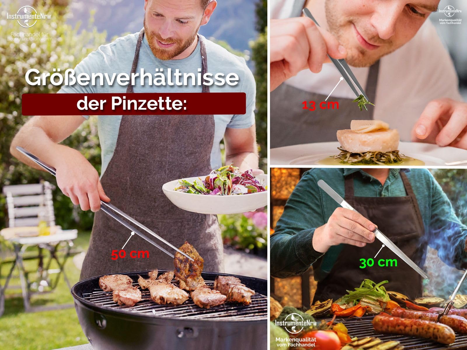 UKOFEW Profi Kochpinzette 30cm Edelstahl - Grillzange Für Küche & BBQ