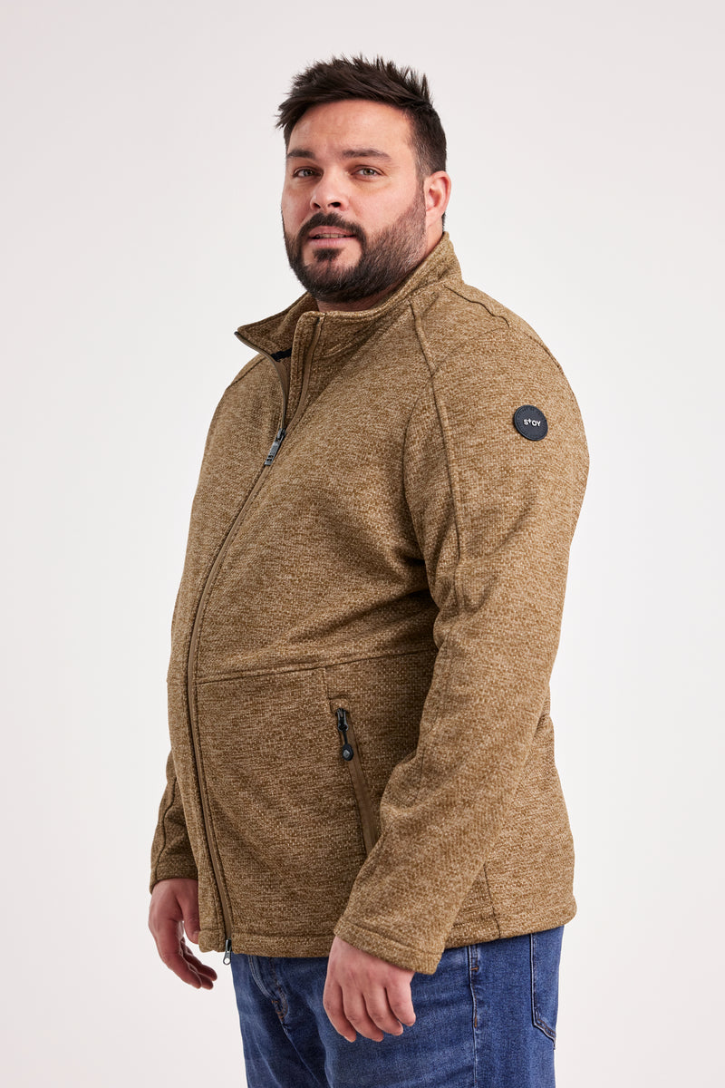 Mann, diese Strickfleecejacke von Pfundskerl ist ja mal richtig bequem! Erhältlich in großen Größen von 3XL bis 14XL in Anthrazit - endlich mal was für kräftigere Männer! Der sportive Schnitt mit Stehkragen und Zwei-Wege-Reißverschluss mit praktischer Zip-Verlängerung gibt dir maximale Bewegungsfreiheit. Die seitlichen Reißverschlusstaschen bieten sicheren Stauraum für deine Sachen. Innen ist die Jacke mit weichem Microfleece gefüttert - super angenehm auf der Haut und hält schön warm. Die pflegeleichte Verarbeitung macht sie zum perfekten Begleiter bei wechselhaftem Wetter. Die melierte Strickoptik sieht sportlich und zeitgemäß aus - nicht so langweilig wie viele andere Jacken. Perfekt für Alltag, Freizeit und Outdoor-Aktivitäten. Kombinier sie einfach mit Jeans, Funktionshose oder Sneakern - sieht immer gut aus! Ob in der Stadt, beim Spaziergang oder auf Tour - diese Jacke ist dein neuer Lieblingsbegleiter. Endlich eine Jacke, die wirklich passt und dabei noch toll aussieht!