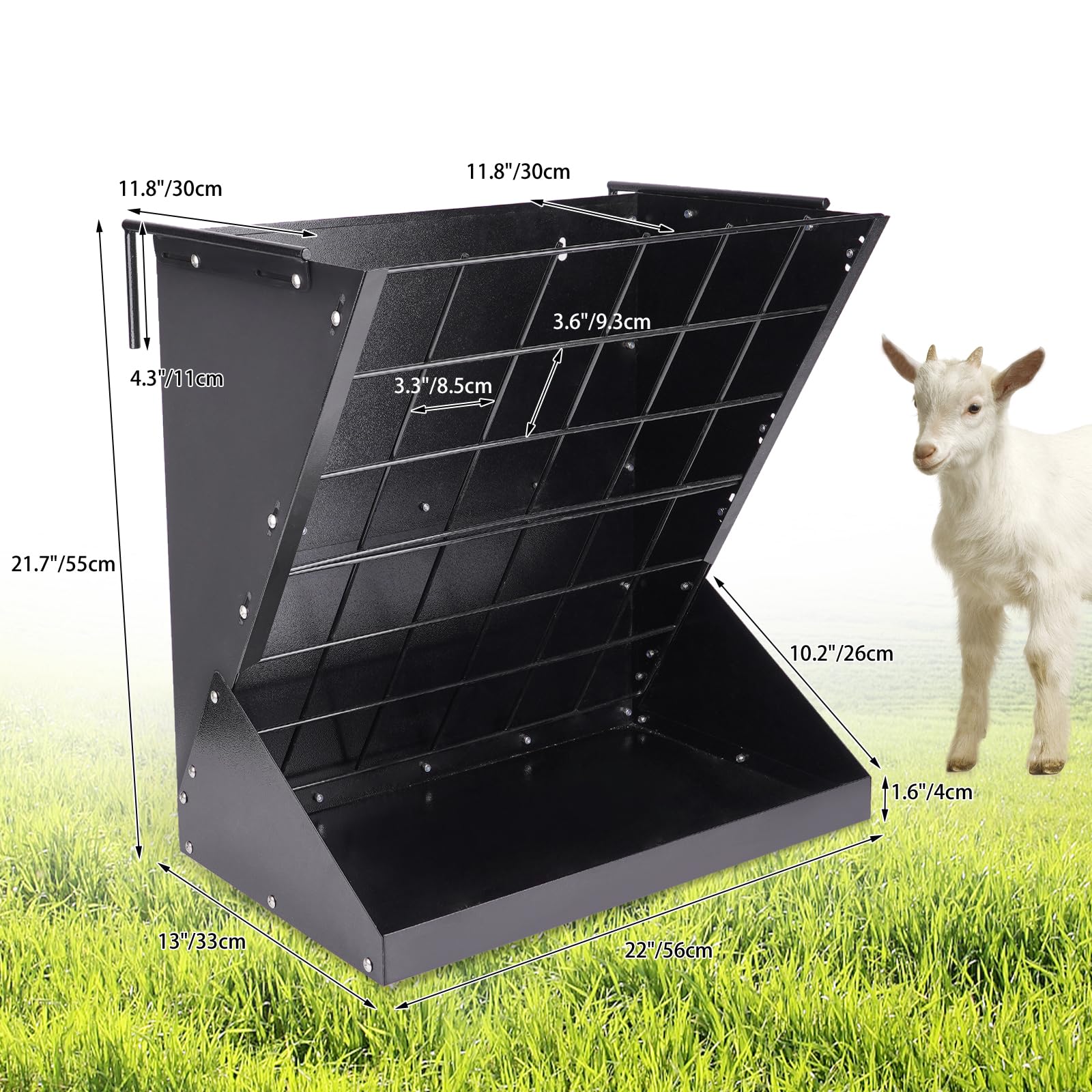 Endlich Schluss mit Heuverschwendung! Diese massive Heuraufe aus Q235-Stahl ist ein echter Game-Changer für jeden Hof. Mit 56x33x60cm bietet sie reichlich Platz für Heu, Futter oder sogar Salzlecksteine. Das clevere Gitterdesign sorgt dafür, dass Deine Tiere nicht zu viel auf einmal herauszupfen können - so bleibt mehr Futter in der Raufe und weniger auf dem Boden. Die abgerundeten Kanten schützen die Tiermäuler vor Verletzungen. Dank der Haken auf der Rückseite kannst Du sie einfach am Zaun aufhängen, oder sie steht stabil auf dem Boden. Die schwarze Sprühbeschichtung ist rostresistent und macht die Reinigung zum Kinderspiel. Perfekt für Ziegen, Schafe, Pferde oder Kaninchen - Deine Tiere werden die natürliche Futterposition lieben, und Du sparst bares Geld!