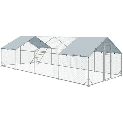 Robuster Stall für deine Tiere! Aus verzinktem Stahl, 150x60x73cm groß in Grau. Mit praktischen Rädern zum leichten Bewegen. Öffnungsbares Dach und Seitentür für einfache Reinigung. Inklusive 2 Käfigwannen, 2 Edelstahl-Futterautomaten und 10 Krawatten. Das verschlüsselte Netz schützt vor Raubtieren. Perfekt für 6-10 Hühner, aber auch für Enten, Kaninchen oder andere Kleintiere. Einfache Montage, hält lange!