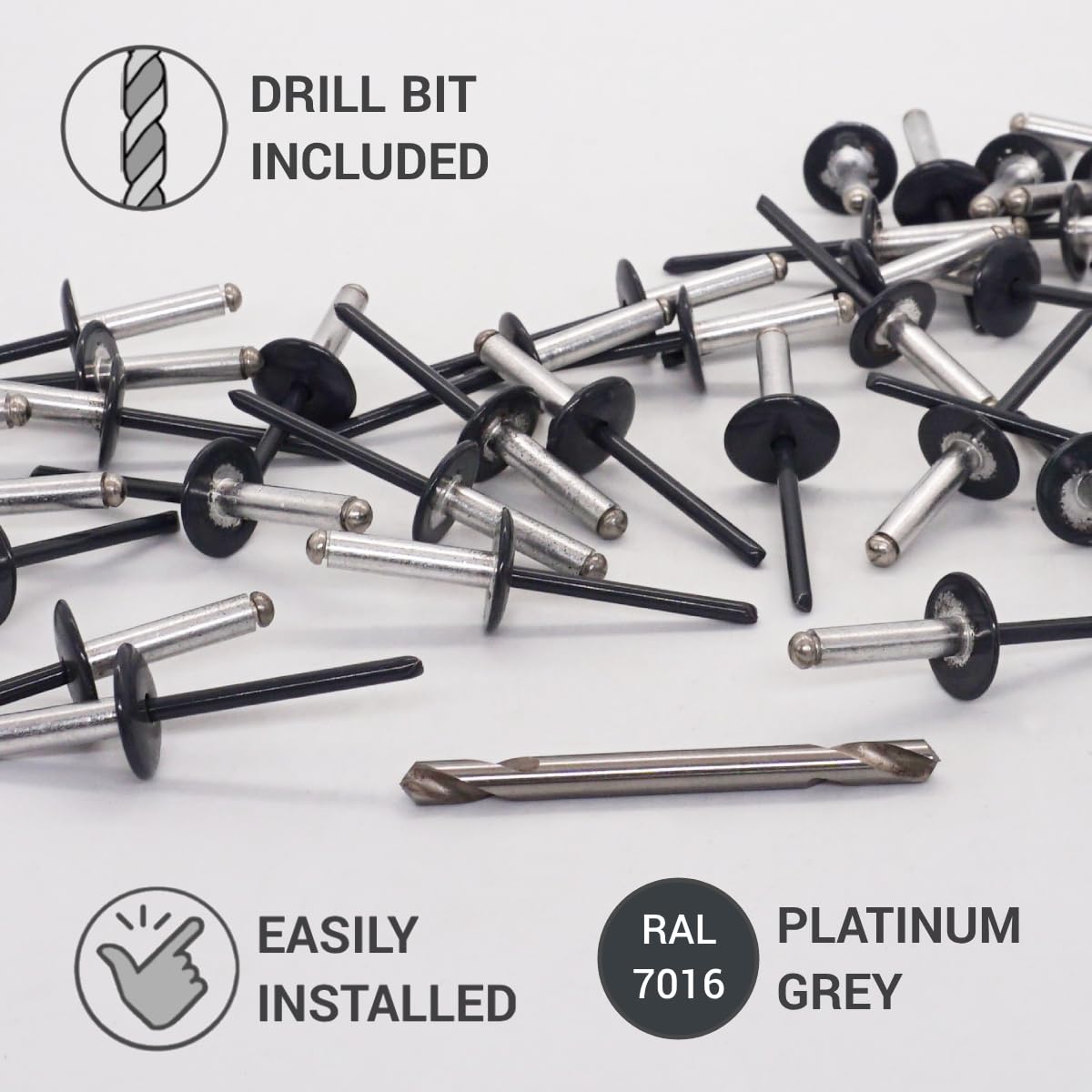 SKIR'CO Blindnieten 4,8x16 Mm Großflansch - 50 Stück Alu Mit Edelstahldorn RAL 7016