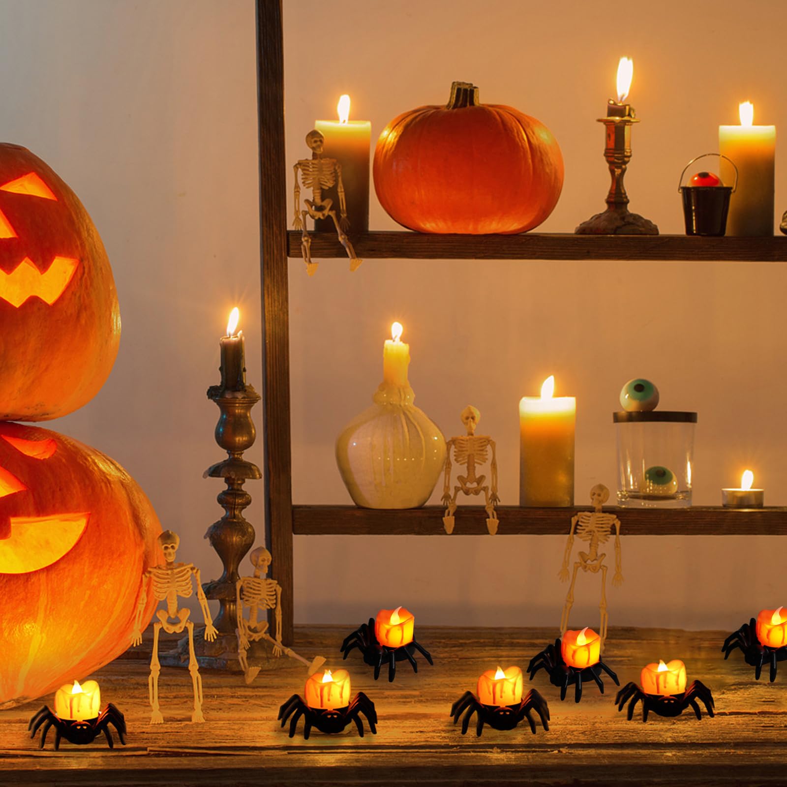 Gruselige Halloween LED-Kerzen - Mit Krähen, Spinnen & Schloss-Motiven