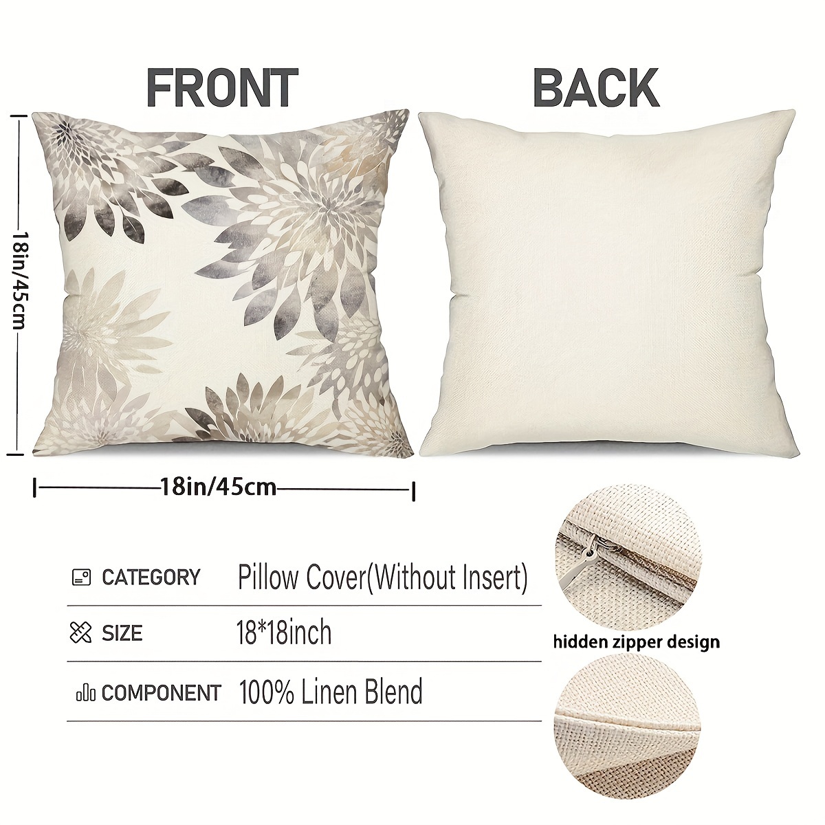 Mit 40,6 x 40,6 cm passen sie perfekt zu den meisten Standard-Kisseneinsätzen. Der Reißverschluss ist unsichtbar integriert, sodass das Design nicht gestört wird. Kisseneinsätze sind separat erhältlich.
