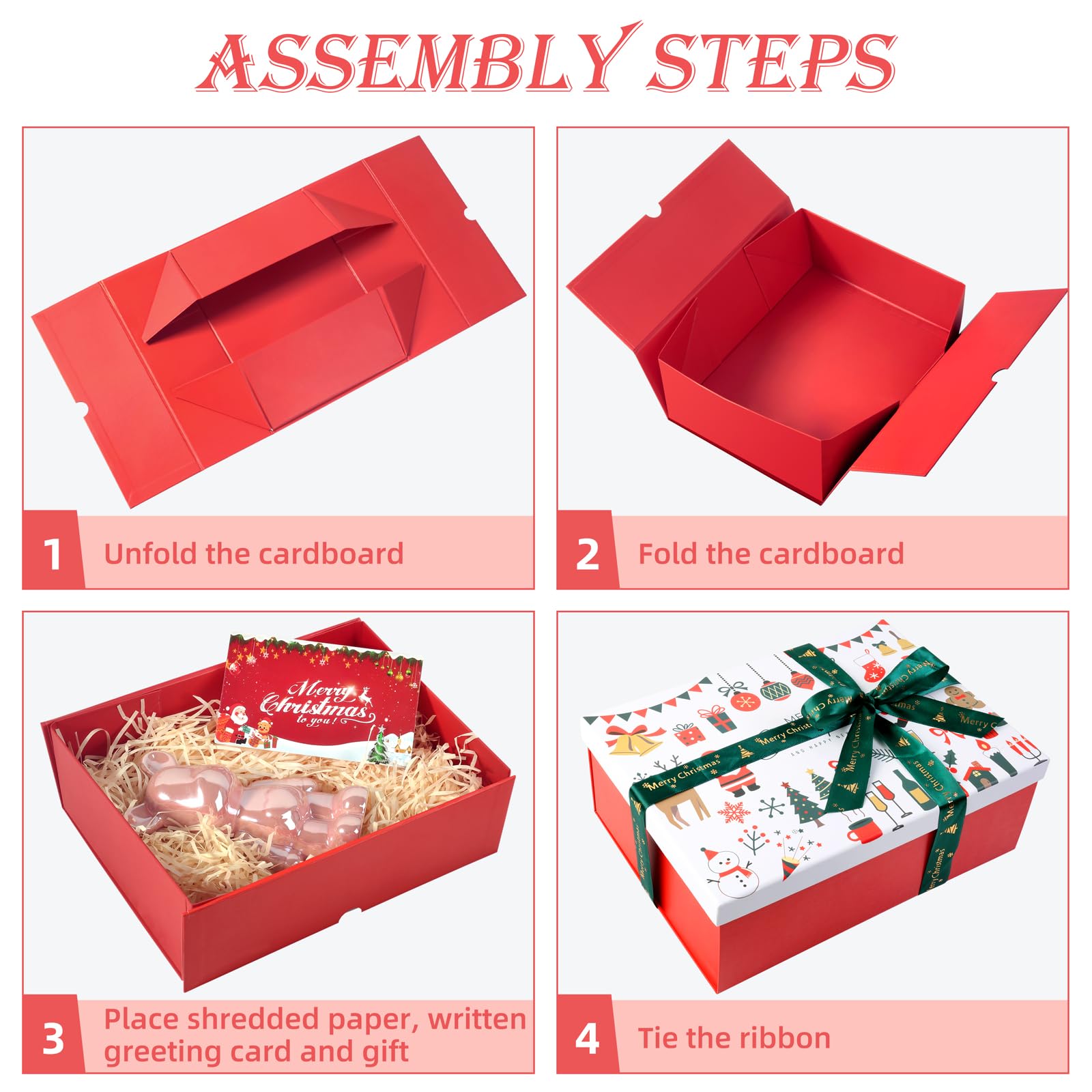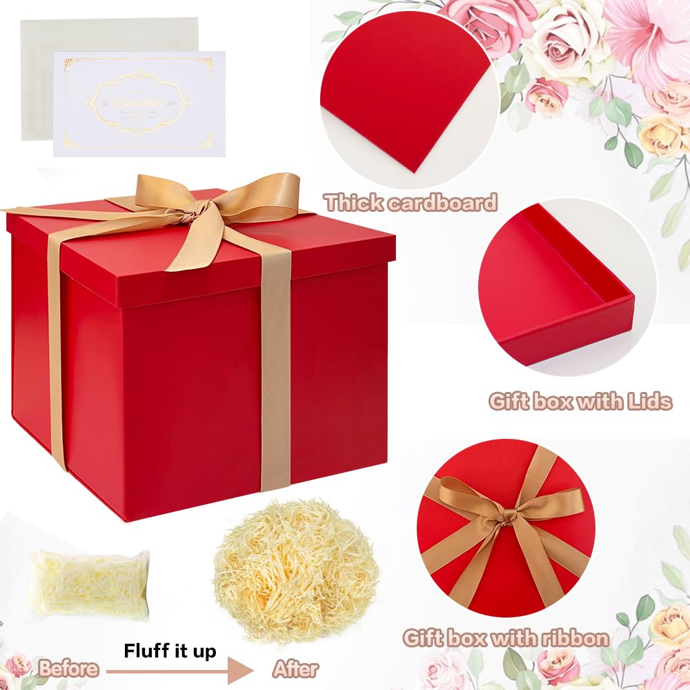 Guartinx Geschenkbox Set Rot - Große Geschenkbox 29x22x10,5cm Mit Schleifen & Karte | Für Geburtstage & Feiertage