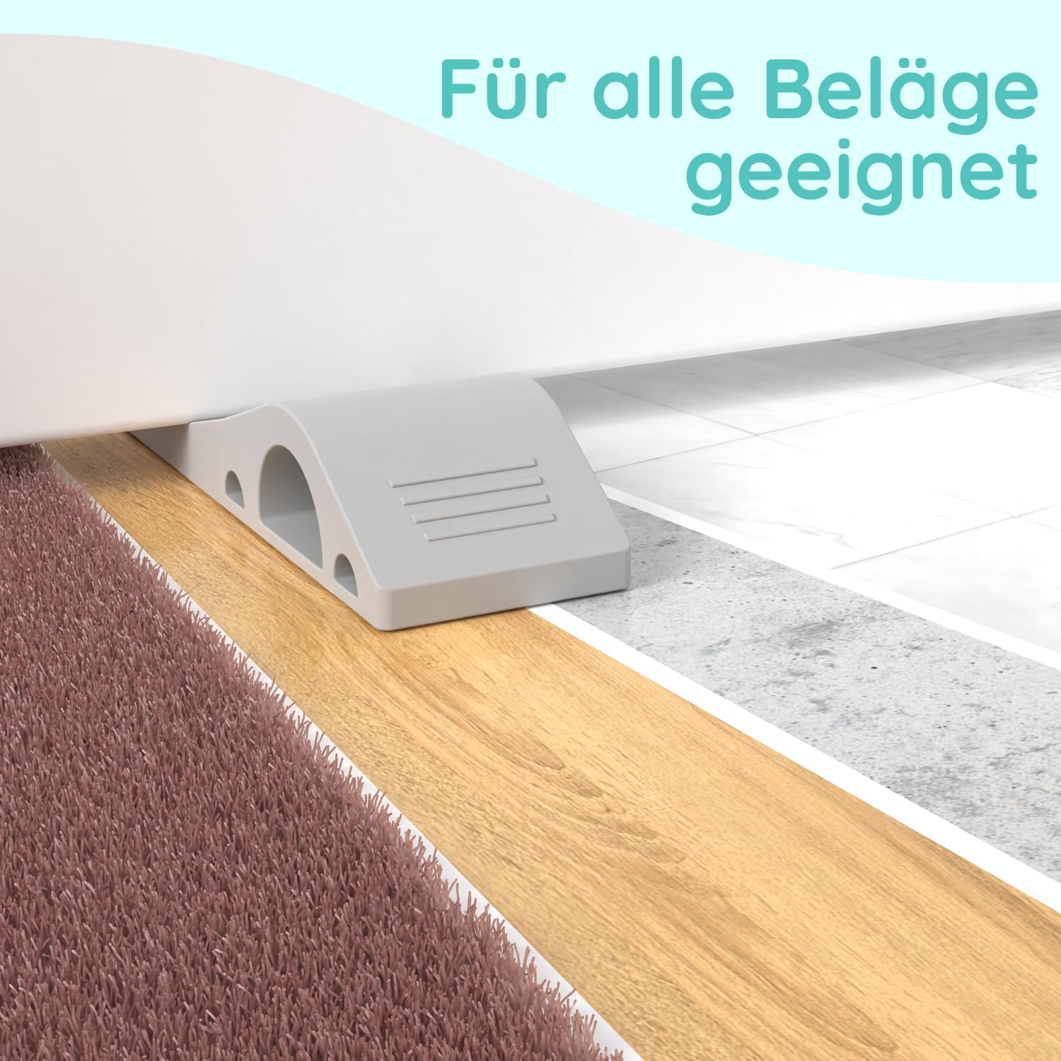 Diese Türkeile sind die perfekte Lösung für alle, die ihre Türen sicher offen halten wollen! Das 2er-Set aus stabilem TPE-Gummi passt in Türspalten von 1-30mm und hält selbst bei kräftigem Durchzug bombenfest. Der Clou: Bei größeren Spalten kannst du einfach zwei Keile übereinander stapeln - wie praktisch ist das denn? Mit dem pulverbeschichteten Stahlgriff in Edelstahloptik lässt sich der Keil super einfach platzieren und wieder entfernen, ohne dass du dich bücken musst. Das beste Material ist komplett geruchsneutral und wetterfest - also perfekt für innen und außen! Ob in der Wohnung, im Büro oder am Hauseingang, diese Keile machen überall eine gute Figur. Und das Beste: Sie hinterlassen keine Kratzer oder Flecken auf deinem schönen Boden. Übrigens: LouMaxx ist ein deutsches Unternehmen und die Keile sind 'Made in Europe' - da unterstützt du regionale Qualität! Einfach unterm Türblatt platzieren und die Tür bleibt genau da, wo du sie haben willst.