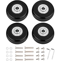 Deine Kofferrollen sind kaputt? Dieses 4er Set mit 50x18mm Gummi-Rollen macht deinen Koffer wieder flott! Doppellager für extra Leichtlauf und Stabilität - hält bis zu 50kg pro Rad. Komplett mit Achsen, Schrauben und Inbusschlüssel für einfache Montage. Passt für die meisten Koffer, Trolleys und Skateboards. Verschleißfestes Gummi für lange Haltbarkeit. Nie wieder schleppende Koffer - mit diesen Ersatzrollen rollt dein Gepäck wie neu!