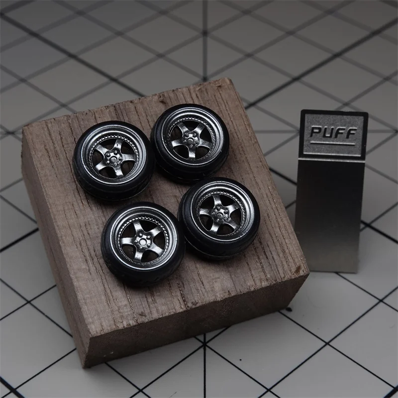 4 Leichtmetallräder 1:64 Mit Gummireifen - Modellauto Zubehör Für Sammler