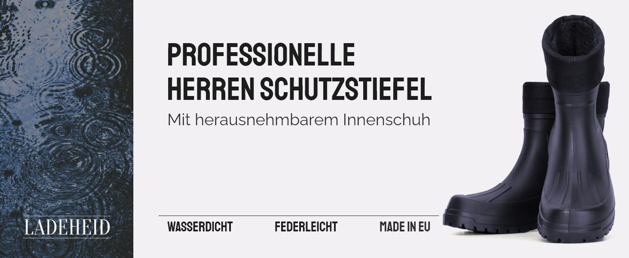 Bei Regenwetter bist du mit diesen Ladeheid Gummistiefeln bestens gerüstet! 👢 Die hochwertigen Stiefel sind komplett wasserdicht und bieten optimalen Schutz bei nassem Wetter. Ob bei der Arbeit im Wald, im Stall oder einfach beim Spaziergang im Regen - deine Füße bleiben garantiert trocken! Die rutschfeste Laufsohle gibt dir auch auf glatten Untergründen sicheren Halt. Besonders praktisch: Der geräumige Zehenbereich sorgt für super Tragekomfort, auch wenn du die Stiefel länger an hast. Hergestellt aus robustem PVC-Material sind sie nicht nur langlebig, sondern auch super leicht zu reinigen. Einfach abspülen und sie sehen wieder aus wie neu! Und das Beste: Diese Stiefel werden in der EU produziert - da weiß man, was man hat. Egal ob du sie als Regenstiefel, für die Forstarbeit oder als Stallschuhe nutzt - sie erfüllen ihren Zweck perfekt. Der elastische Schaft macht das An- und Ausziehen besonders einfach. Also, worauf wartest du noch? Hol dir diese praktischen Stiefel und sei für jedes Wetter gewappnet! Perfekt für alle, die viel draußen unterwegs sind oder einfach nur trockene Füße lieben. 💧