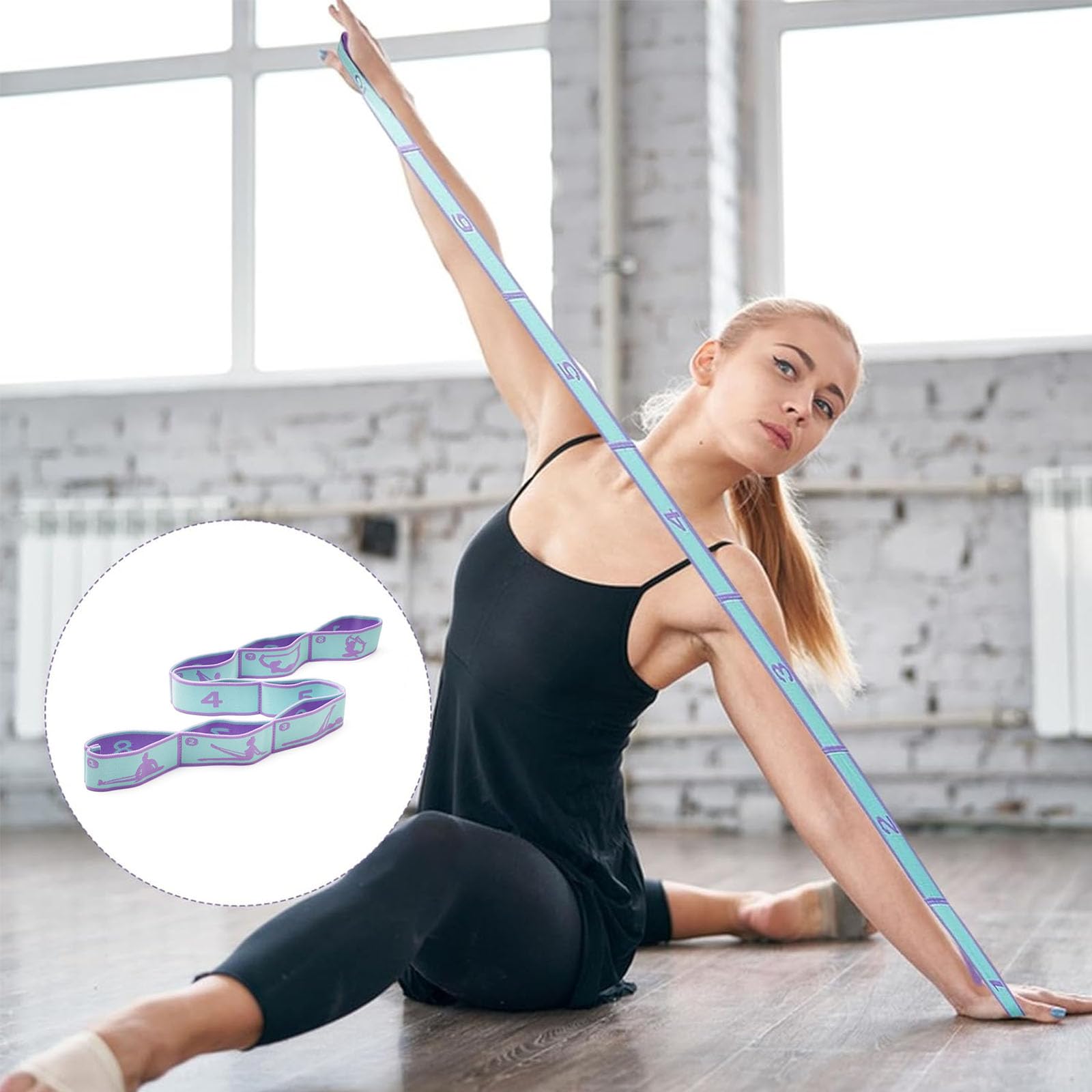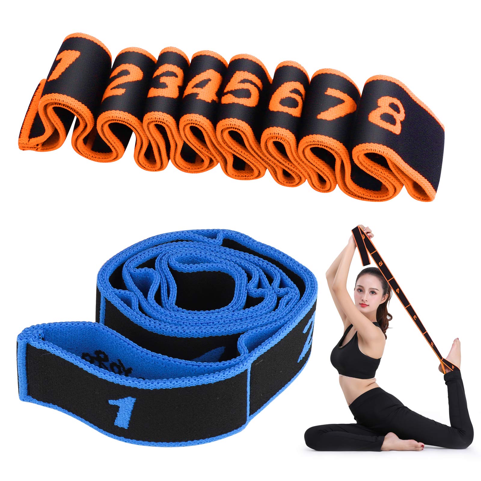 SSKHE Yoga Gurt Set - 2 Stretch Gurte Mit 8 Schlaufen Für Yoga & Pilates
