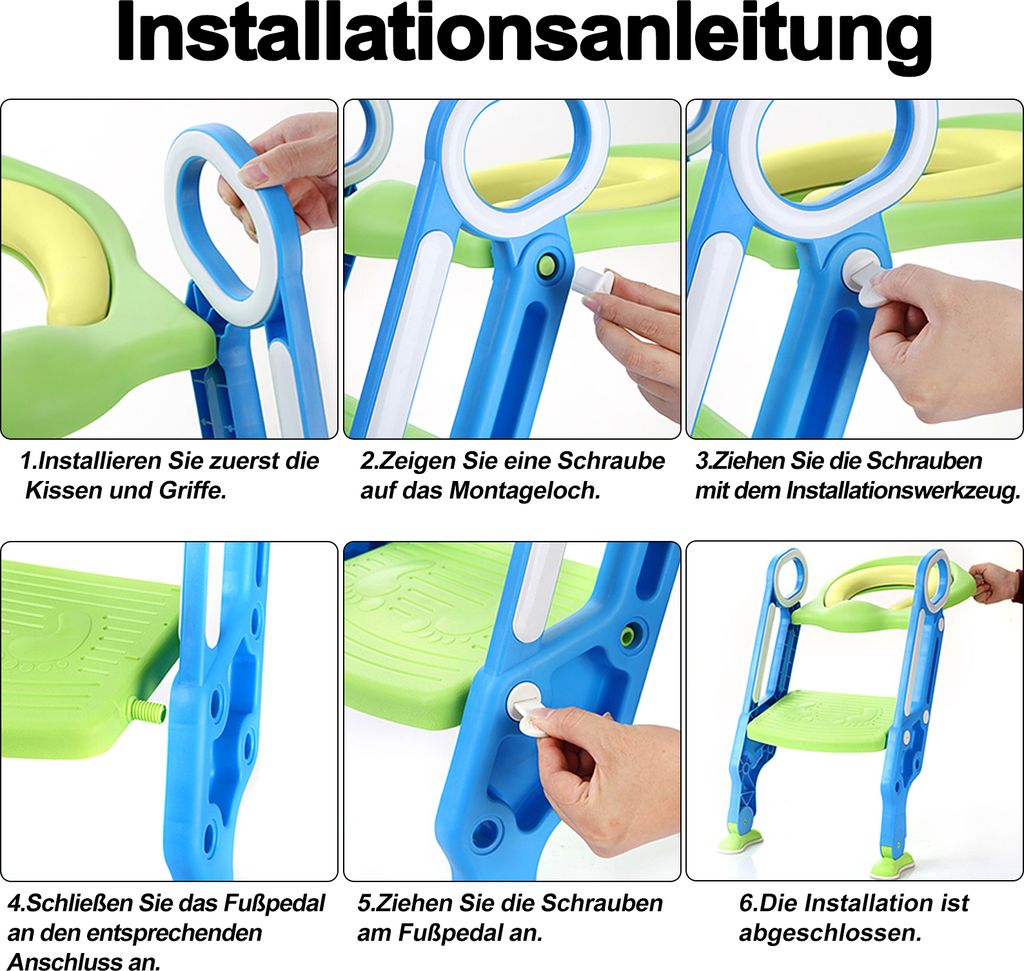 Boah, dieser Toilettentrainer mit integrierter Treppe macht das Töpfchen-Training zum Kinderspiel! Mit zwei Stufen Höhenverstellung passt er perfekt für Kinder von 1-7 Jahren. Die weichen PU-Kissen sorgen für maximalen Komfort und die seitlichen Griffe geben deinem Kind Sicherheit. Mit 6 rutschfesten Füßen steht der Trainer bombenfest auf dem Boden - kein Wackeln mehr! Das klappbare Design ist super platzsparend und leicht zu transportieren. Besonders praktisch: Das erhöhte Urinaldesign eignet sich sowohl für Jungen als auch für Mädchen. Der Trainer passt für V-förmige, O-förmige und U-förmige Toiletten bis 40 cm. Aus ungiftigem PP+PU Material gefertigt und bis 75 kg belastbar - also richtig robust! Einfach aufstellen, Kind draufsetzen und dem Töpfchen-Erfolg entgegenfiebern. So klappt's garantiert mit dem Trockenwerden!