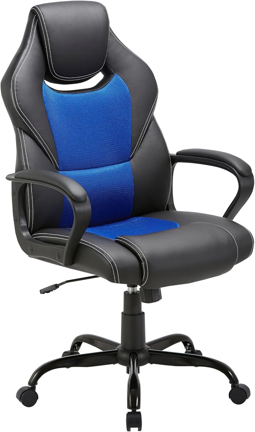 Stylish und bequem durch lange Arbeitstage! Der ALFORDSON Racing Stuhl kombiniert Gaming-Look mit ergonomischem Komfort. Höhenverstellbar von 35-45cm - passt für Kinder und Erwachsene. Bis 150kg belastbar - extrem stabil und langlebig. Weiche Polsterung aus PU-Leder und Stoff - wie eine Umarmung für deinen Rücken. 360° drehbar - volle Bewegungsfreiheit. Fünf Rollen für smooth Bewegungen auf jedem Boden. Perfekt für Homeoffice, Gaming-Sessions oder Lernmarathon. Der breite Fuß gibt sicheren Stand. Reduziert Rückenbelastung bei langem Sitzen. Mach deinen Arbeitsplatz zum Wohlfühlbereich! In blau - ein echter Hingucker in jedem Zimmer. Investiere in deinen Sitzkomfort - dein Rücken wird's dir danken!