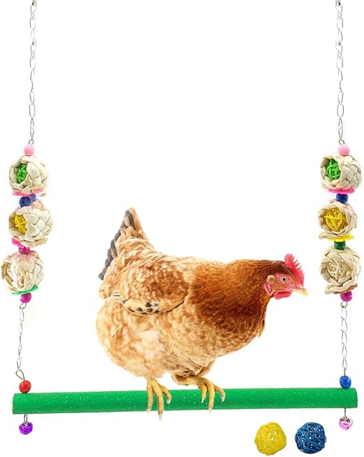 Deine Hühner werden's lieben! Diese praktische Schaukel aus robustem Holz (45x38cm) bietet deinem Geflügel einen tollen Platz zum Ausruhen und Spielen. Mit Metallketten für einfache Aufhängung im Stall oder Freigehege. Fördert natürliches Verhalten und Bewegung - perfekt für Hühner, Hähne und sogar Papageien. Wetterbeständig und sicher für den täglichen Einsatz im Freien.