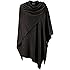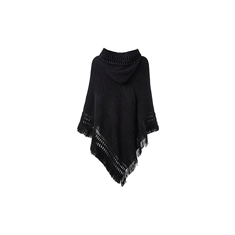 Damen Kapuzen Poncho Mit Häkelborde - Weicher Strickumhang Mit Fransen