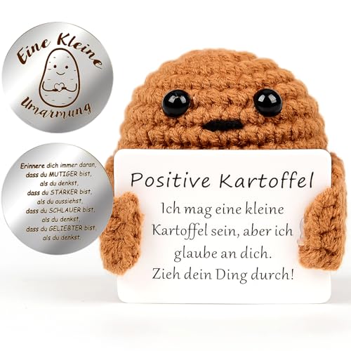 Suchst du ein ganz besonderes Geschenk das gute Laune macht? Diese süße Nymora Häkelkatze 'Positive Kartoffel' ist genau das Richtige! Die graue Katzenpuppe ist nicht nur super niedlich anzusehen, sondern gibt auch emotionalen Support in schwierigen Momenten. Perfekt für Katzenliebhaberinnen, Freundinnen oder einfach für dich selbst als kleiner Glücksbringer für den Alltag. Die liebevoll gehäkelte Katze hat glitzernde Augen und einen zarten Nasenknopf - das sieht einfach herzerwärmend aus! Sie ist aus weichem Garn gefertigt und passt in jede Tasche oder jeden Rucksack. So hast du deinen kleinen Begleiter immer dabei, ob im Auto, auf dem Schreibtisch oder im Regal. Super als Geschenk zu Weihnachten, Geburtstagen oder einfach als kleine Aufmunterung für zwischendurch. Die Katze kann auch als Kissen oder zum Stressabbau verwendet werden - einfach drücken und sich besser fühlen! Ein echter Hingucker der garantiert für Lächeln sorgt. Einfach mal bestellen und jemandem eine Freude machen - oder dir selbst!